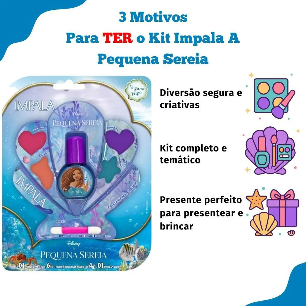Descubra o encanto do fundo do mar com o Kit Impala A Pequena Sereia, um conjunto mágico de maquiagem