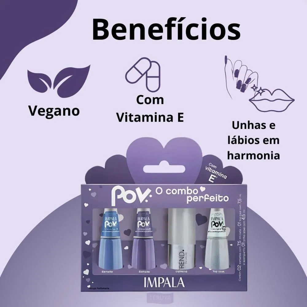 lábios deslumbrantes. Com a qualidade reconhecida da IMPALA, você garante um visual impecável e cheio de vida. Pensado para a mulher moderna que não abre mão de produtos de alta performance e que se preocupa com a ética, este kit é a escolha ideal para realçar sua beleza natural com um toque de glamour. Prepare-se para brilhar em qualquer ocasião com cores vibrantes e um acabamento impecável. O Kit Impala Pov 2.3 Maria Nicolly é mais do que um conjunto de cosméticos; é um convite para expressar sua individualidade e celebrar a beleza em todos os momentos.