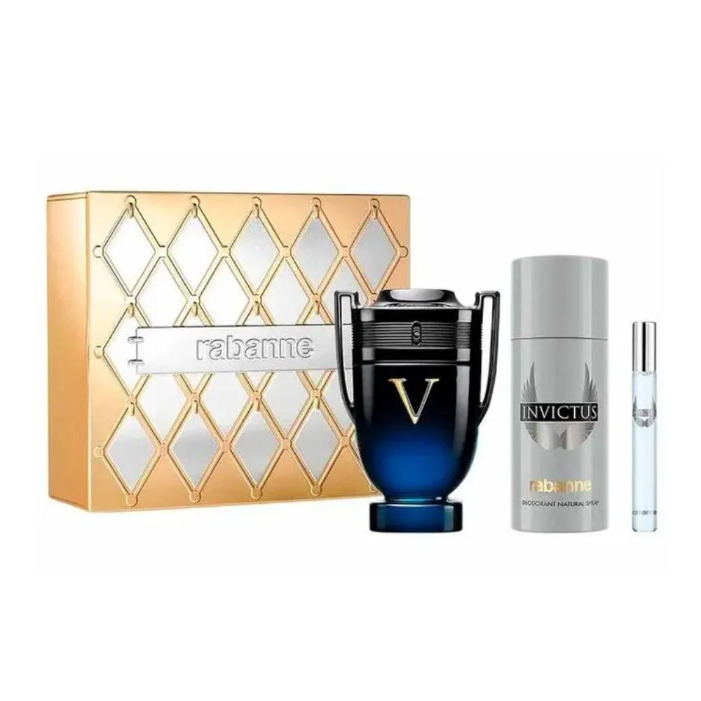Coffret Rabanne Invictus Victory Elixir Kit - perfume masculino + Desodorante +Travel Size