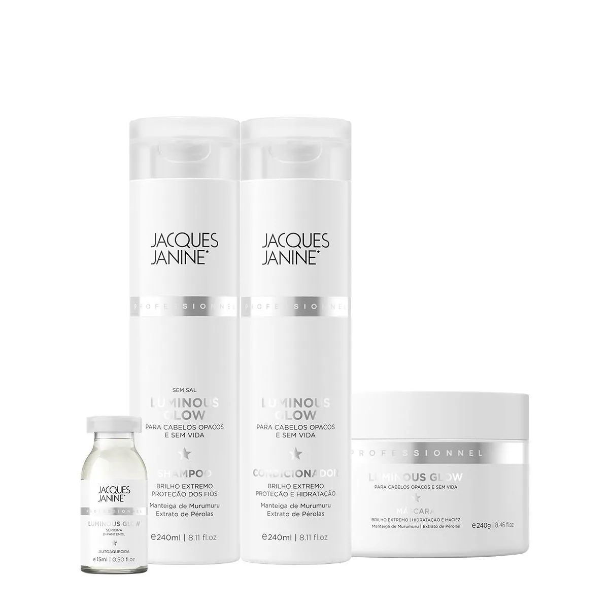Kit Jacques Janine Luminous Glow Shampoo Condicionador Máscara e Ampola (4 Produtos)