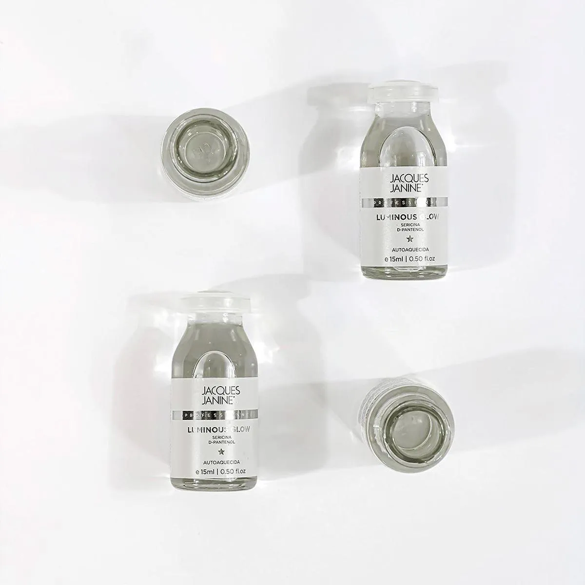 A Ampola Jacques Janine Professionnel Luminous Glow é responsável por uma intensa hidratação que deixa o cabelo com mais brilho, macio e sedoso, utilizando ingredientes como sericina e pantenol para selar cutículas, fortalecer e melhorar a estética capilar.
