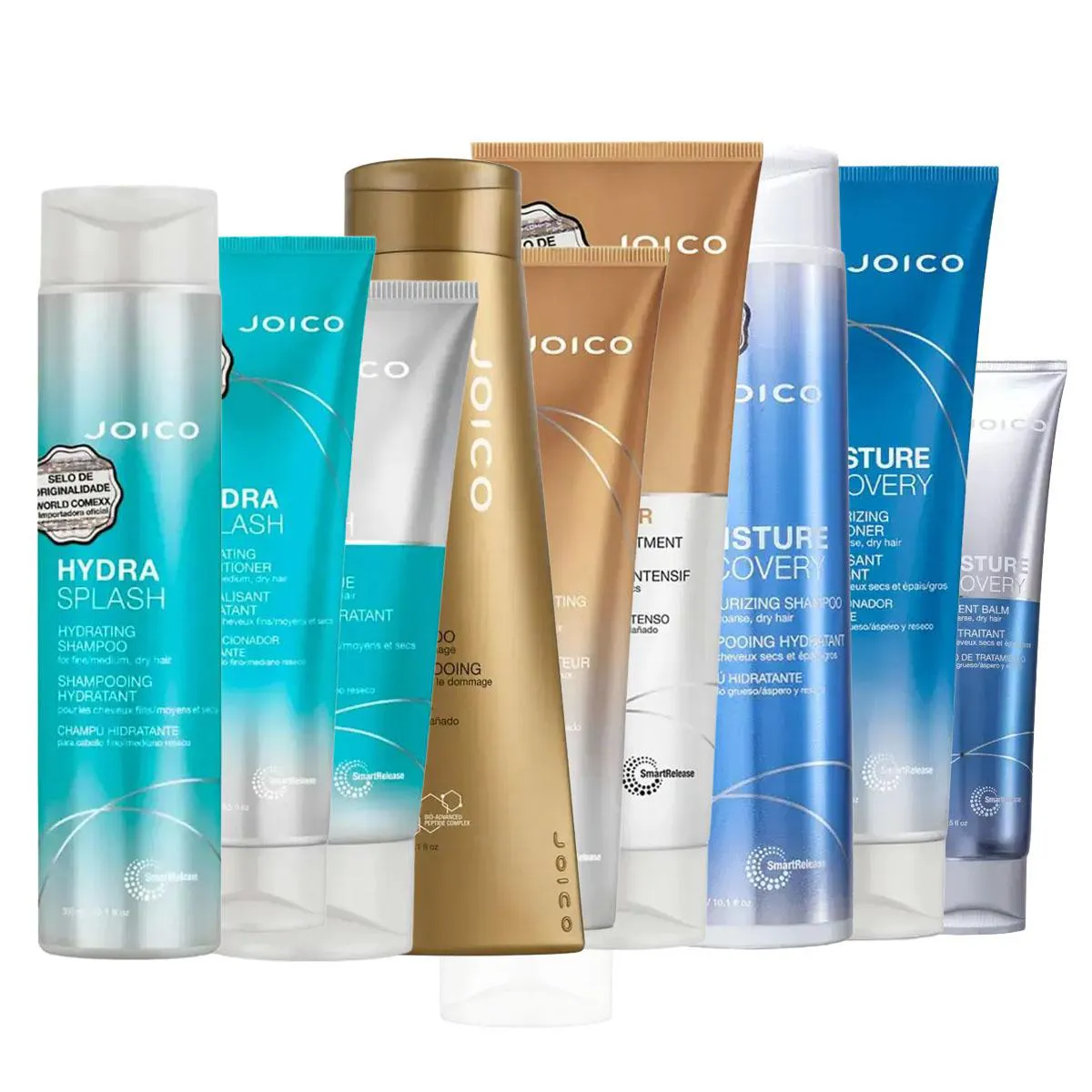 Principais benefícios e diferenciais do Kit Joico Hydra Splash Shampoo 300ml + Condicionador 250ml + Máscara 150ml + K-PAK Shampoo 300ml + Condicionador 250ml + Máscara 250ml + Moisture Recovery Shampoo 300ml + Condicionador 250ml + Máscara 250ml