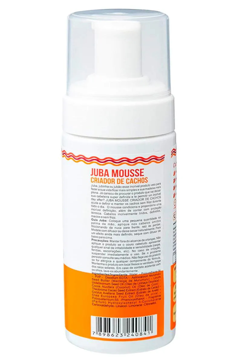 Descrição: O Juba Mousse Criador de Cachos é um produto desenvolvido para facilitar o cuidado e a definição de cachos em cabelos ondulados, cacheados e crespos. Este incrível produto promete tornar sua rotina capilar mais simples e seus cachos mais definidos e livres de frizz. Além de definir os cachos, o mousse também condiciona os fios e oferece proteção térmica. Como usar: Para obter os melhores resultados, siga estas instruções de uso:- - Coloque uma pequena quantidade do mousse na palma da mão.