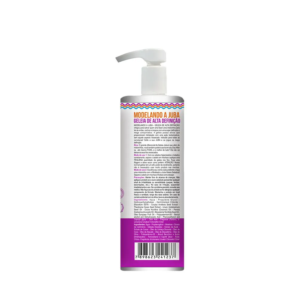MODELANDO A JUBA - GELEIA DE ALTA DEFINIÇÃO é um produto projetado para atender às necessidades das pessoas cacheadas e crespas que desejam obter cachos altamente definidos e bem comportados. Esta geleia contém ativos que proporcionam hidratação e uma textura aprimorada aos cabelos, sem deixá-los com aspecto ressecado. É indicada para cabelos com as curvaturas 3A, 3B, 3C e 4A, 4B, 4C. Com a Geleia Juba, você pode soltar sua juba e conquistar uma definição incrível. Dica: A Geleia Juba oferece a versatilidade de ser usada em misturas personalizadas ou pura, seja no dia a dia ou no seu Day After. Além disso, ela não deixa seus fios ressecados, garantindo um visual deslumbrante. Como usar? Modo de uso 1: • Após aplicar o Encrespando ou Encaracolando a Juba nos seus cabelos, distribua uma quantidade adequada da Geleia Juba nas palmas das mãos. • Em seguida, aplique a geleia nos fios fazendo movimentos de fitas, apertando suavemente o cabelo. • Deixe secar naturalmente ou com o auxílio do Mousse Criador de Cachos, se desejar. Modo de uso 2 (Day After): • Com as pontas dos dedos formando uma pinça, aplique a Geleia Juba nos cachos que podem ter perdido a definição durante a noite. • Aguarde um momento para que a geleia revitalize instantaneamente seus cachos. A Geleia Juba é uma aliada poderosa para manter seus cachos definidos e hidratados, proporcionando o visual desejado sem comprometer a saúde dos seus fios.