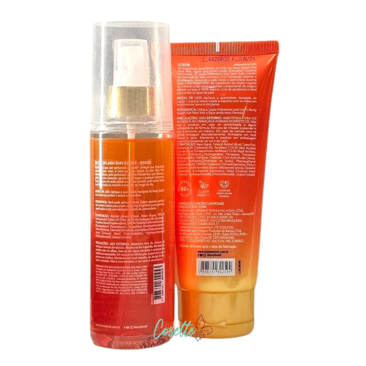 A Loção Hidratante Corporal da Kiss New York contém hemiesqualano, ativo que proporciona hidratação intensa e prolongada, fórmula vegana e feita com 92% de ingredientes naturais. Sun Kisses combina a delicada violeta, com uma pitada inusitada da pimenta rosa, envoltos pelo dulçor da baunilha. Uma fragrância floral gourmand que te convida a viver a vida com positividade e coragem.