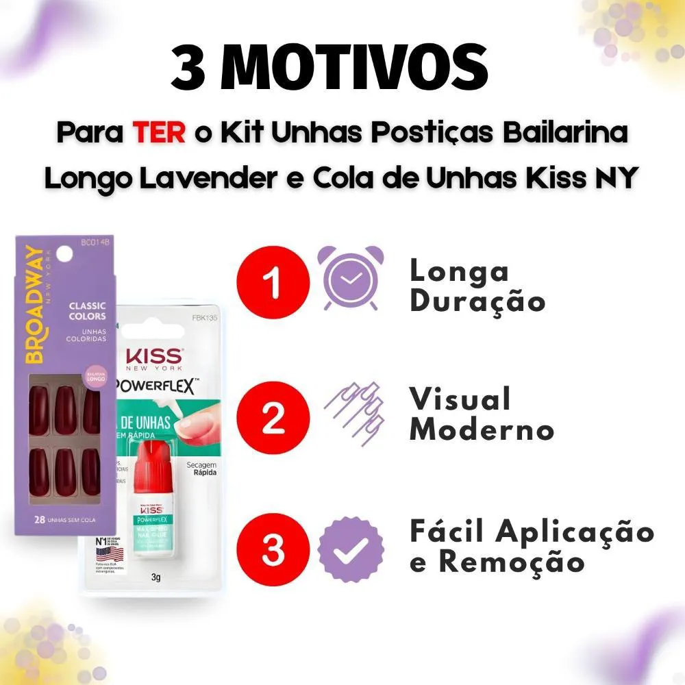 Kit Kiss New York: unhas postiças Bailarina Longo Lavender e Cola De Unhas 3g