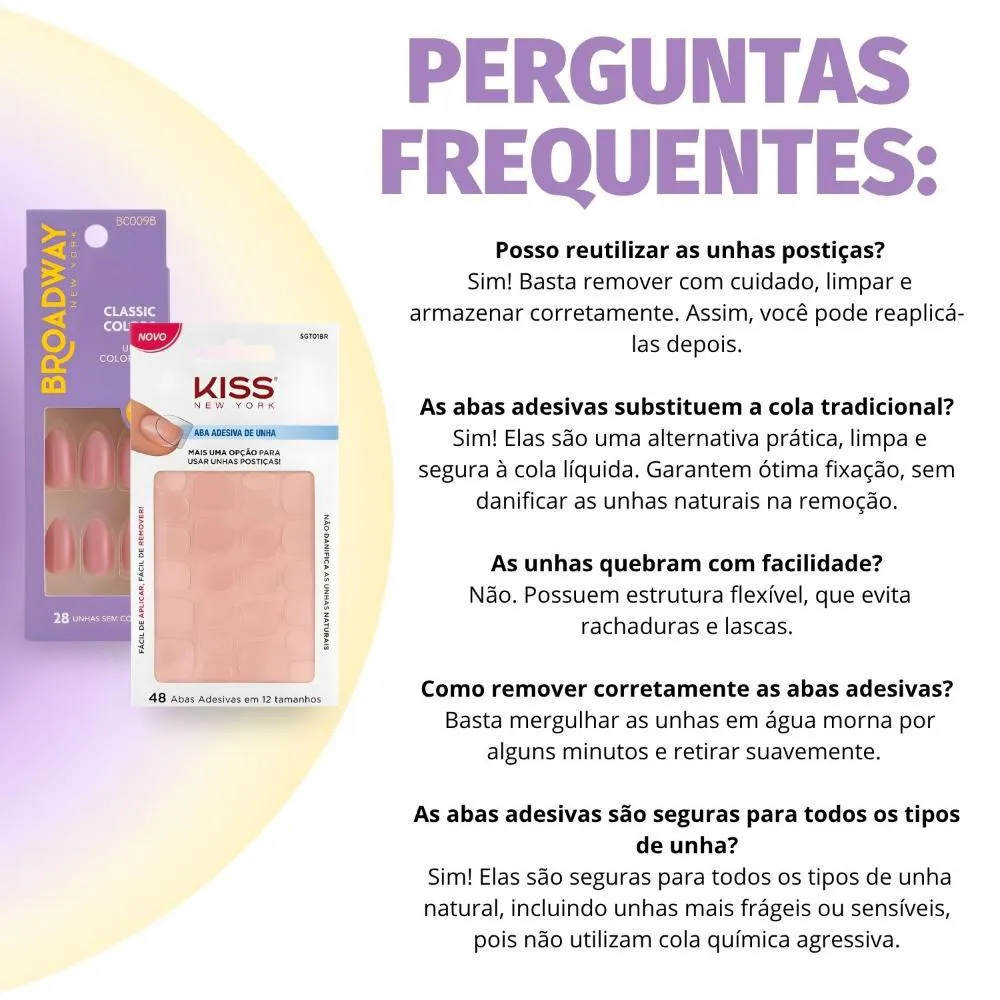 O Kit Broadway Kiss Ny é perfeito para diversas ocasiões, desde eventos especiais, festas e celebrações, até para o uso diário, adicionando um toque de estilo e elegância ao seu visual. Ideal para quem busca uma transformação rápida e impactante para um encontro romântico, uma festa com amigos, ou para quem deseja manter as unhas sempre impecáveis com praticidade no dia a dia.Modo de Uso/Aplicação
