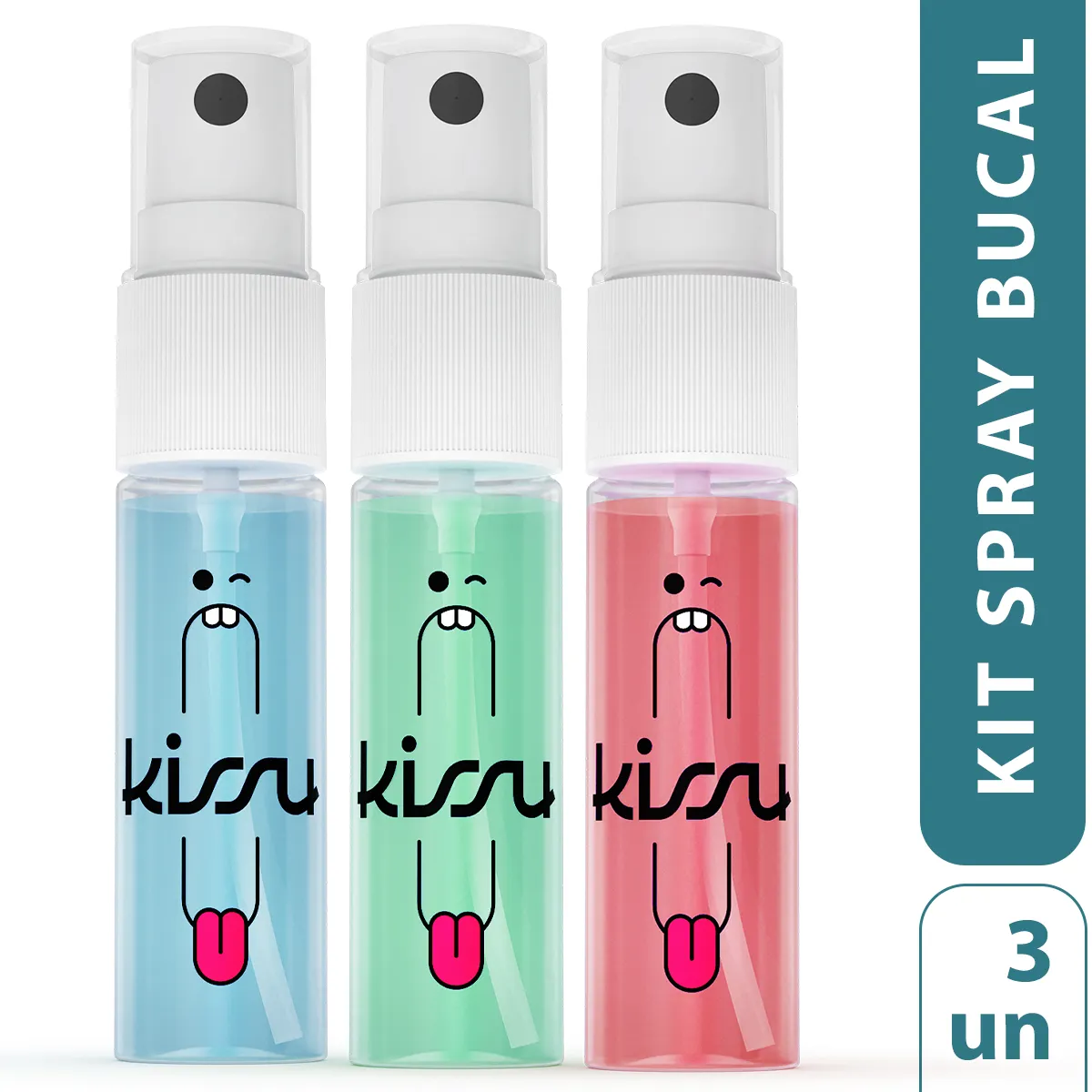 Kit Kissu Spray Bucal Hortelã + Frutas Vermelhas + Menta é um conjunto de sprays bucais elaborados com base em óleo natural de menta, que eliminam o mau hálito com máxima refrescância e garantem um frescor instantâneo a qualquer hora do dia.