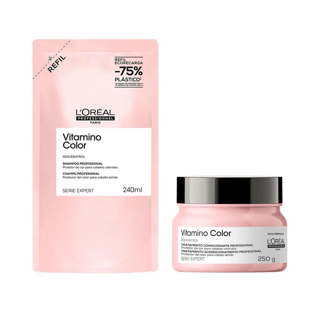 Itens Inclusos :1- Kit L'Oréal Professionel Serie Expert Vitamino Color shampoo 240ml Refil + máscara 250g                                              .