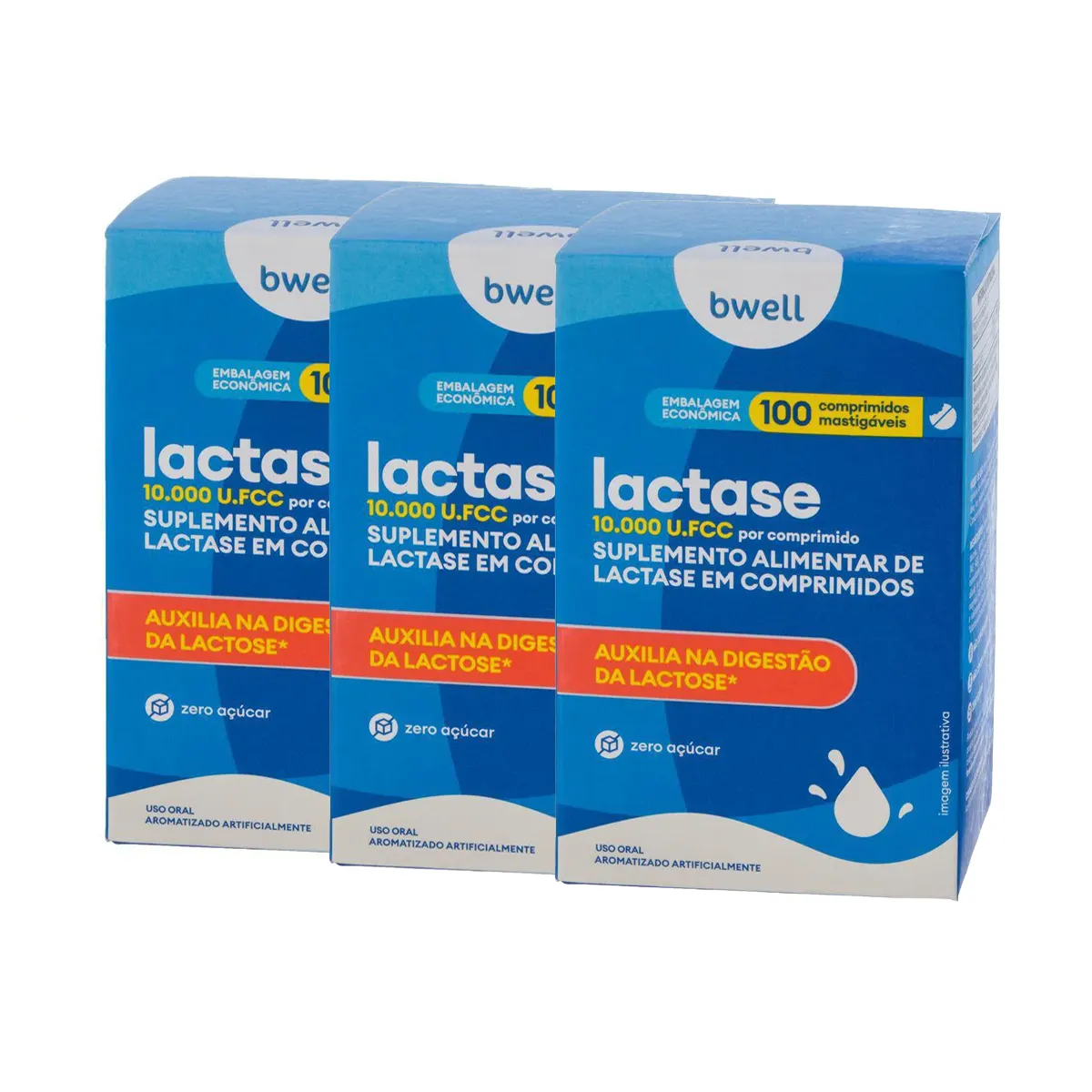 Kit Lactase 10.000 FCC bwell 100 Comprimidos Mastigáveis 3 Unidades