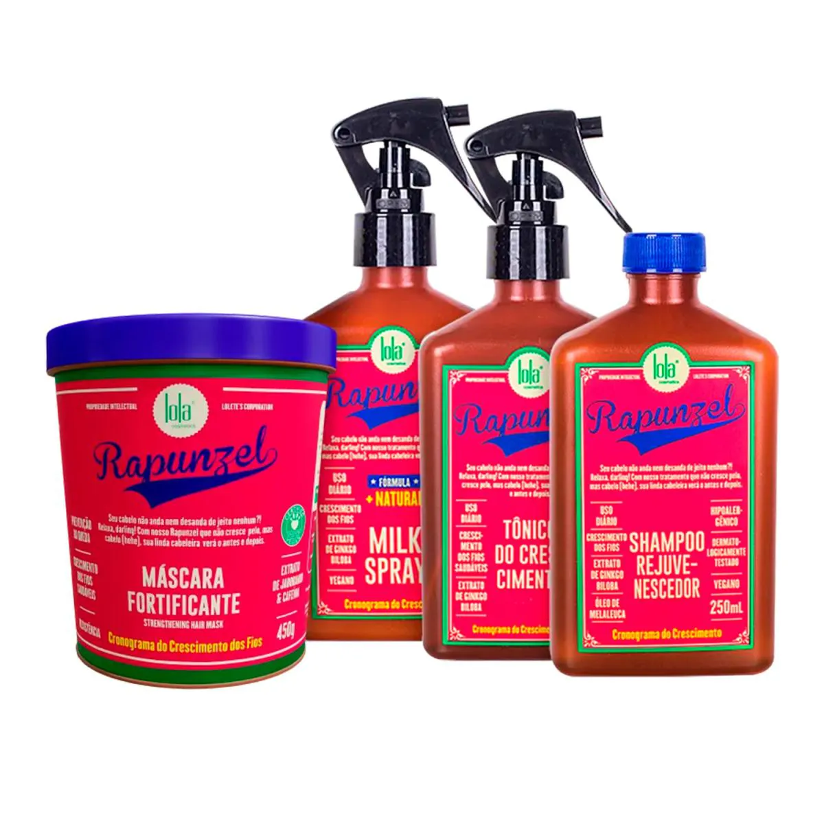 Lola Rapunzel shampoo Rejuvenescedor + Milk Spray + Tônico de Crescimento + máscara Fortificante (4 Produtos)