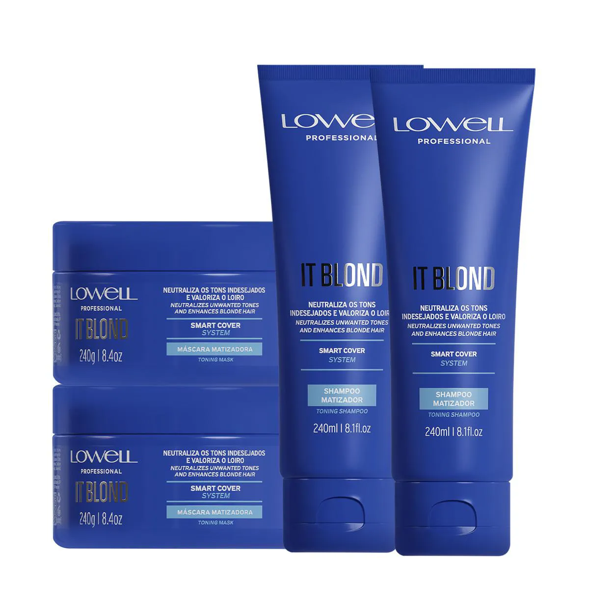 Kit Lowell Violet Platinum shampoo e máscara Matizadora Cabelos Loiros (4 produtos)