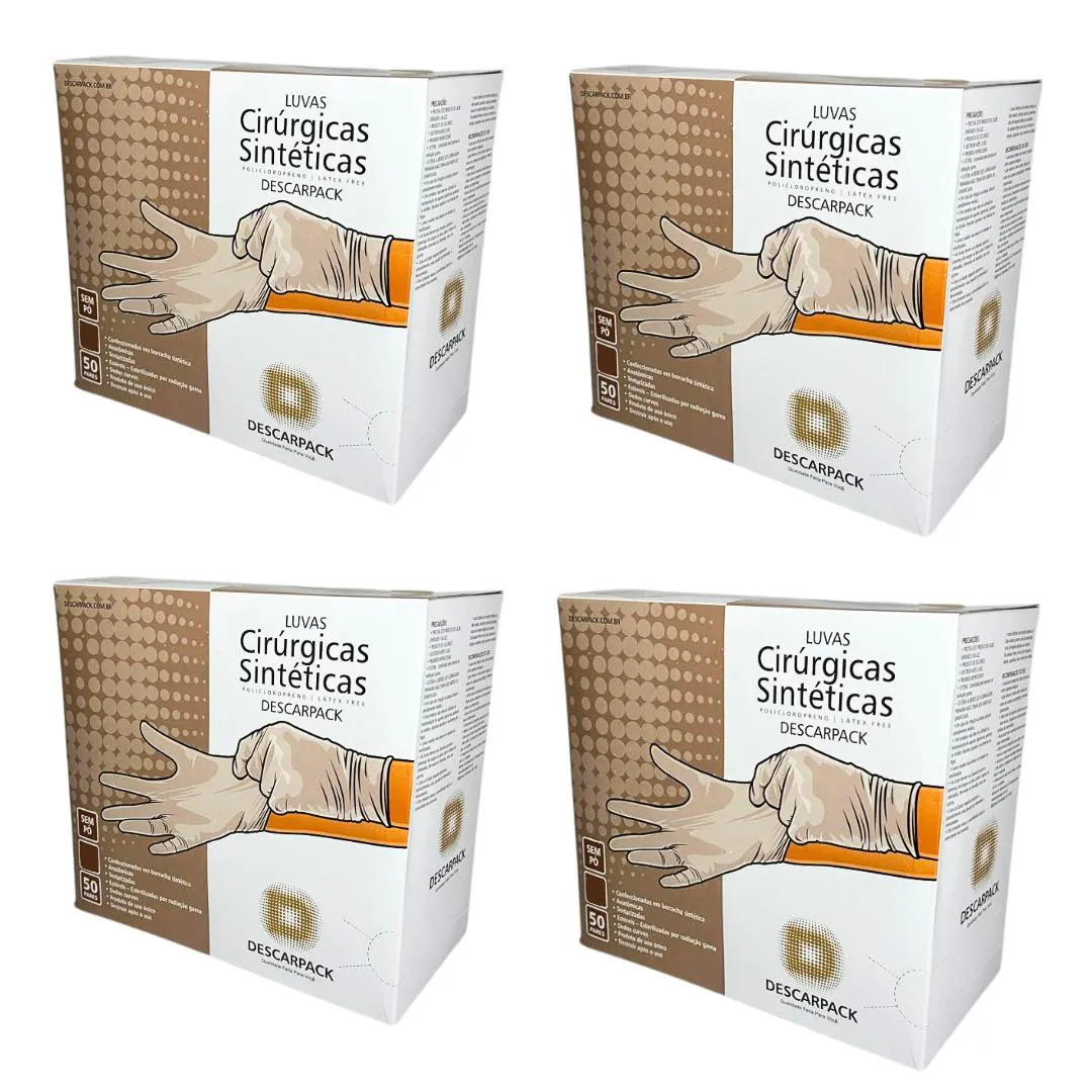 Luvas Sintéticas Cirúrgicas de Policloropreno Descarpack As Luvas Sintéticas Cirúrgicas de Policloropreno estéreis da marca Descarpack são projetadas para oferecer máxima segurança, conforto e precisão em procedimentos cirúrgicos exigentes. Fabricadas sem pó e sem látex, são ideais para profissionais de saúde que buscam minimizar o risco de reações alérgicas, garantindo proteção tanto para o usuário quanto para o paciente. Feitas de policloropreno, um material sintético de alta qualidade, essas luvas proporcionam elasticidade superior e resistência à perfuração. Com um ajuste anatômico perfeito, as luvas oferecem conforto prolongado e excelente sensibilidade tátil, essencial para procedimentos que requerem precisão. Elas são estéreis, assegurando uma barreira eficaz contra agentes biológicos e minimizando o risco de contaminação. Produzidas seguindo normas rigorosas de qualidade e segurança internacionais, as Luvas de Policloropreno Descarpack possuem registro ANVISA nº 10330660308, garantindo sua conformidade para uso no Brasil. As luvas se adaptam perfeitamente às mãos de cada profissional, proporcionando um ajuste seguro e confortável sem comprometer a liberdade de movimento,oferecendo uma solução prática e econômica para ambientes que demandam alto consumo de luvas, como hospitais, clínicas, laboratórios e consultórios. O design sem pó dessas luvas não só reduz o risco de irritação e contaminação, como também promove um ambiente mais limpo e seguro, essencial para o controle de infecções. A combinação de alta resistência, ajuste anatômico e sensibilidade tátil faz das Luvas de Policloropreno Descarpack uma escolha ideal para profissionais que buscam qualidade, segurança e confiabilidade. Com sua capacidade de oferecer proteção superior e conforto excepcional, essas luvas são essenciais para quem atua na área da saúde, onde a precisão e a segurança são fundamentais. Disponíveis nos tamanhos 6,5; 7,0; 7,5; 8,0; e 8,5 Cada caixa contém 50 pares (100 unidades) Registro ANVISA: 10330660308