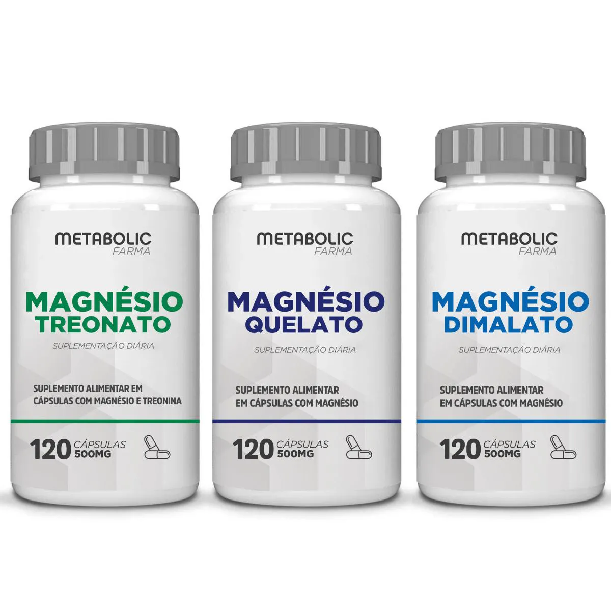 Kit Magnesio Treonato + Dimalato + Quelato Bisglicinato 500Mg 120 Cápsulas - Metabolic Farma