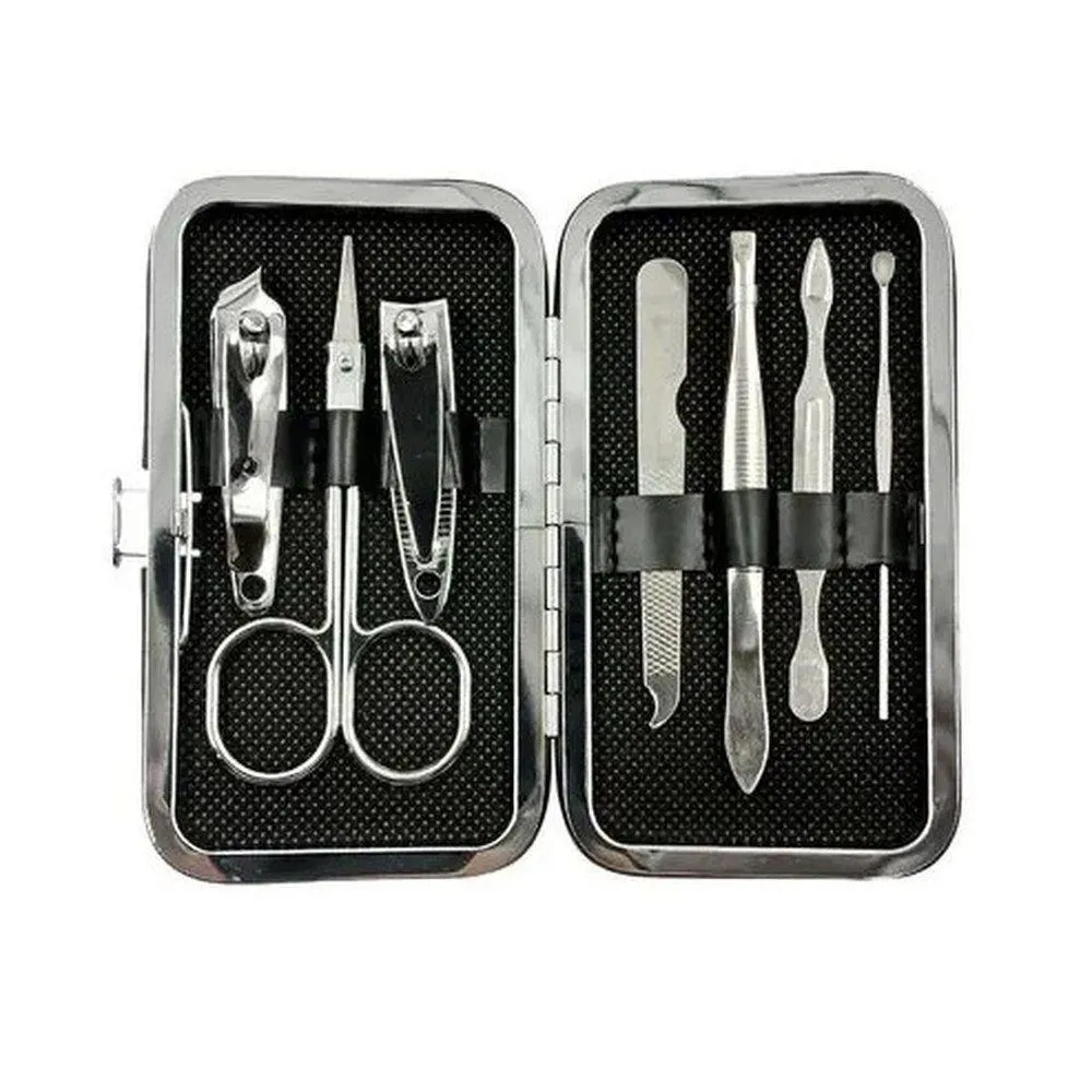 Kit Manicure Contém 7 Peças: - 2 Cortadores de Unha (5,5cm) - 1 Tesoura (9cm) - 1 Espátula P/ Unha (7,6cm) - 1 Lima P/ Unha (9,5cm) - 1 Pinça (8,7cm) - 1 Cureta Auricular (8cm) + Estojo