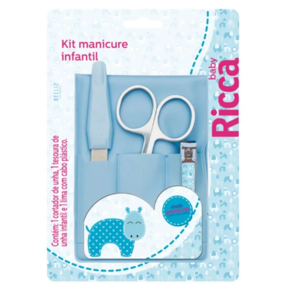 Kit Manicure Ricca infantil é composto por 1 Tesoura, 1 Lixa de unha, com cabo plástico resistente e lâminas em aço inox, 1 Cortador de unha infantil, em tamanho adequado para as delicadas mãos dos bebês, ideal para ser levado a qualquer lugar. A Ricca é uma das marcas da Belliz que detém marcas importantes em seu portfólio como Prada, Vertix, Ricca, Enox, Basics Accessories, Kess e Clia. Belliz está mudando sua marca corporativa para Belliz Company, reforçando assim seu posicionamento como uma empresa que oferece produtos de beleza para diferentes públicos. Contém: - 1 Lima com cabo de plástico - 1 Tesoura de unha infantil - 1 Cortador . Composição Tesoura: aço inox. Lima: aço inox e polipropileno. Cortador de unha: aço cromado e polipropileno.