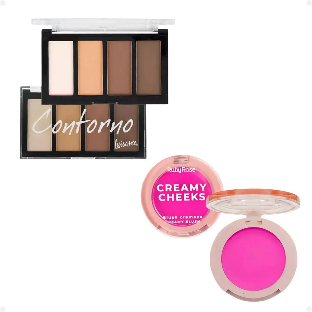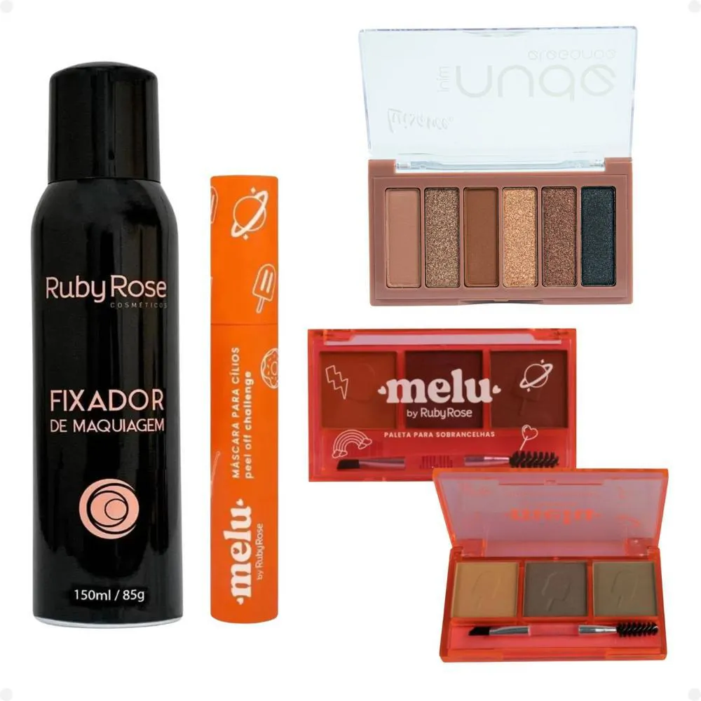 Kit maquiagem RUBY ROSE: Blush, máscara, Paleta de Sobrancelhas, Paleta de Sombras, Contorno, e Fixador