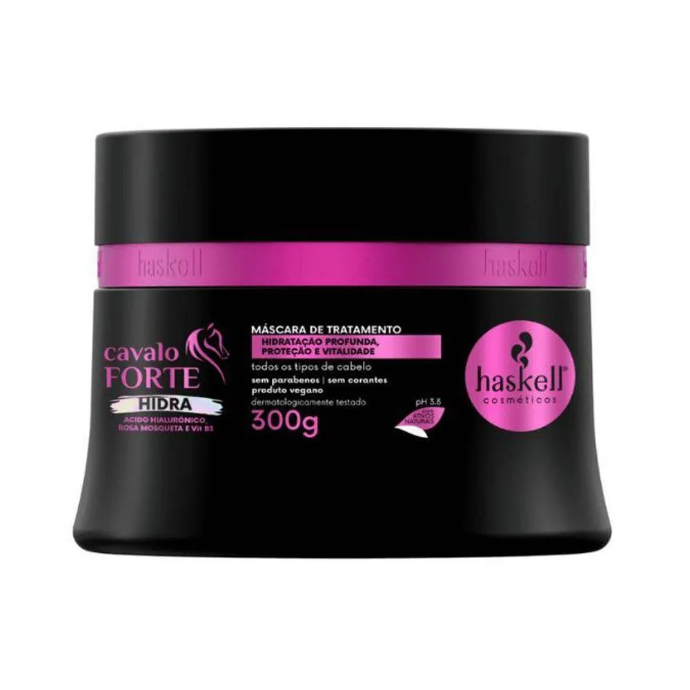 Este kit reúne o melhor das máscaras de tratamento da Haskell para proporcionar hidratação, reconstrução e nutrição intensa aos cabelos ressecados. máscara de Tratamento Cavalo Forte Hidra 300g: Hidratação profunda para recuperar a vitalidade e o brilho dos cabelos. Máscara de Tratamento Cavalo Forte 300g: Reconstrução capilar para fortalecer os fios s e quebradiços. Máscara de Nutrição Infusão de Óleos 300g: Nutrição intensa com óleos poderosos para revitalizar e dar maciez aos cabelos ressecados. O Kit Máscaras Cavalo Forte Hidra + Cavalo Forte + Infusão de Óleos Haskell é composto por: Máscara de Tratamento Cavalo Forte Hidra 300g Máscara de Tratamento Cavalo Forte 300g Máscara de Nutrição Infusão de Óleos 300g Indicação: Cabelos ressecados. Experimente agora este kit completo para transformar seus cabelos ressecados em cabelos saudáveis, hidratados e brilhantes. DÚVIDAS FREQUENTES: Qual a validade do produto? Haskell tem validade de 2 anos a partir da data de fabricação. Tem em estoque? Temos todos os nossos produtos disponíveis para . Produto? Adquirido diretamente do distribuidor autorizado Haskell. personalizado? Elaboração de kits sob medida. OBSERVAÇÕES SOBRE A COMPRA: Mimos e + mimos e com o pedido sempre tem um cupom! Sabia!? Compras efetuadas até as 14 hrs serão enviadas no mesmo dia. Compras efetuadas sexta-feira após as 14 hrs serão enviadas no dia útil seguinte. Todos os produtos são enviados com . Caso seu produto chegue não se preocupe, fale com a gente! NA