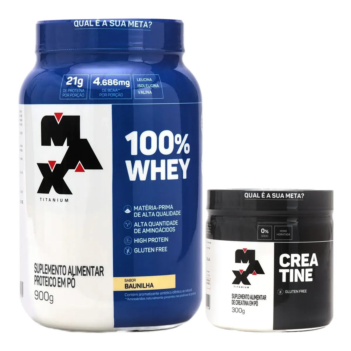 Kit Max Titanium Whey Protein 100% Whey Baunilha 900g + Creatina Creatine 300g