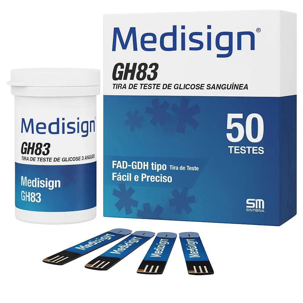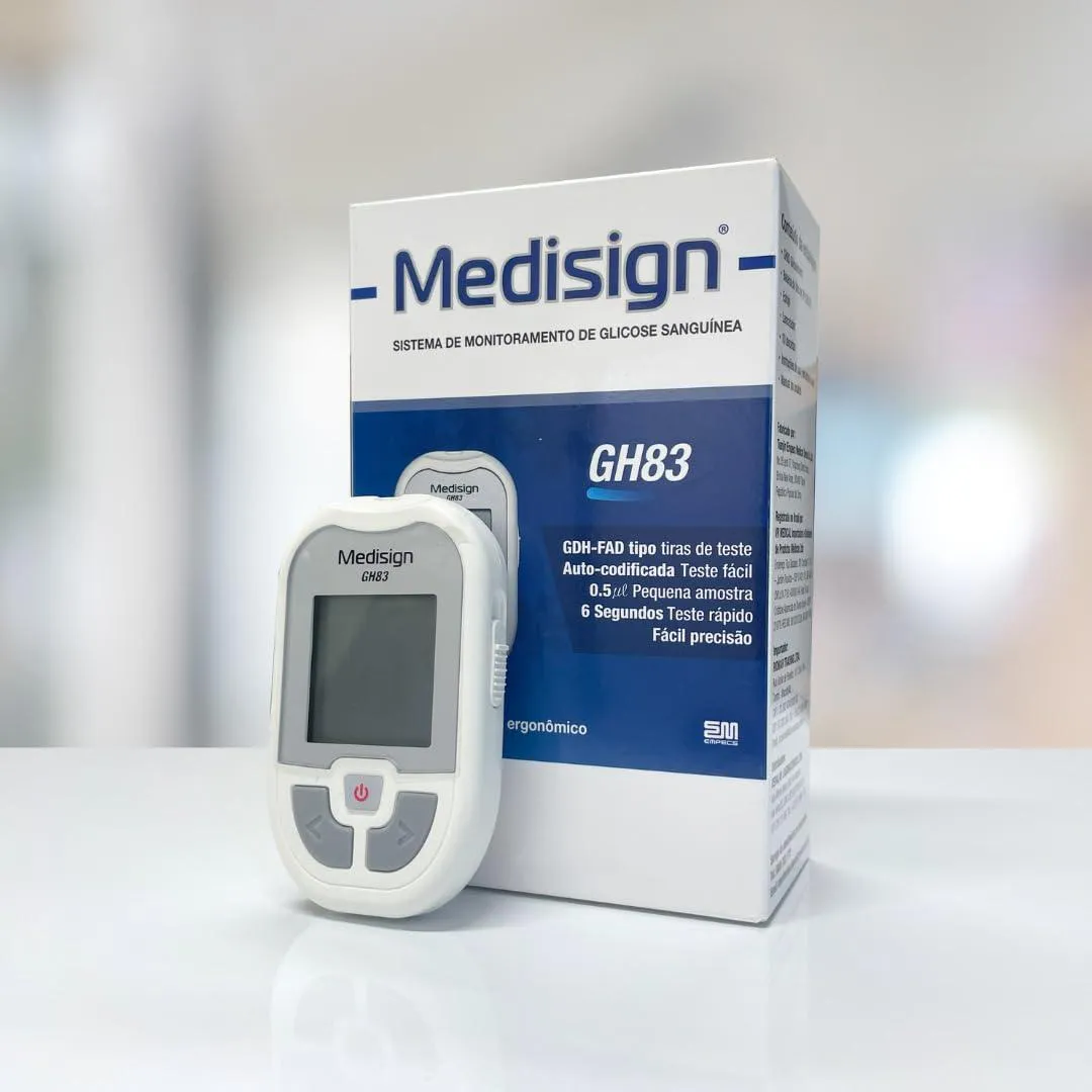 O Kit Medidor de Glicose Medisign da Cepalab foi desenvolvido para oferecer precisão, segurança e praticidade no monitoramento diário da glicemia. Ideal para uso pessoal ou profissional, este kit completo acompanha tudo o que você precisa para obter resultados confiáveis de forma rápida e confortável. Com tecnologia de ponta, o aparelho Medisign GH83 proporciona medições exatas em poucos segundos, enquanto suas tiras reagentes de alta qualidade garantem precisão na leitura dos níveis de glicose. Além disso, o kit inclui 110 lancetas esterilizadas para punção segura e indolor. Compacto e fácil de usar, o Medisign é a solução ideal para quem busca controlar a diabetes com tranquilidade, em casa ou em qualquer lugar. Conteúdo do Kit 01 Medidor de Glicose Medisign GH83 60 Tiras Reagentes Medisign 110 Lancetas Medisign 01 Caneta Lançadora de Lancetas 01 Estojo para Transporte Manual de Instruções Principais Características Resultados rápidos e precisos em aproximadamente 5 segundos. Necessita de apenas uma pequena amostra de sangue (microgota). Display amplo e de fácil leitura. Memória para armazenar resultados anteriores. Tiras embaladas com controle de qualidade rigoroso. Lancetas esterilizadas, de uso único, para maior segurança. Estojo compacto para transporte e armazenamento. Indicações de Uso Monitoramento diário dos níveis de glicose em casa. Acompanhamento da diabetes com praticidade e confiança. Indicado para pacientes diabéticos, cuidadores e profissionais de saúde.