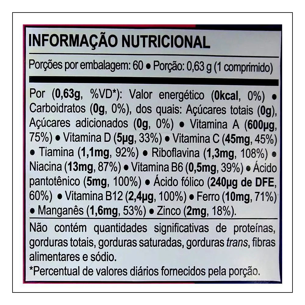 É um multivitamínico específico para mulheres, com vitaminas e minerais que contribuem para a manutenção da saúde da pele, unhas e cabelos, fortalecimento do sistema imunológico e ação antioxidante.