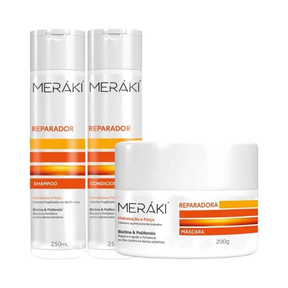 Kit Meráki Reparador Shampoo + Condicionador + Máscara Capilar