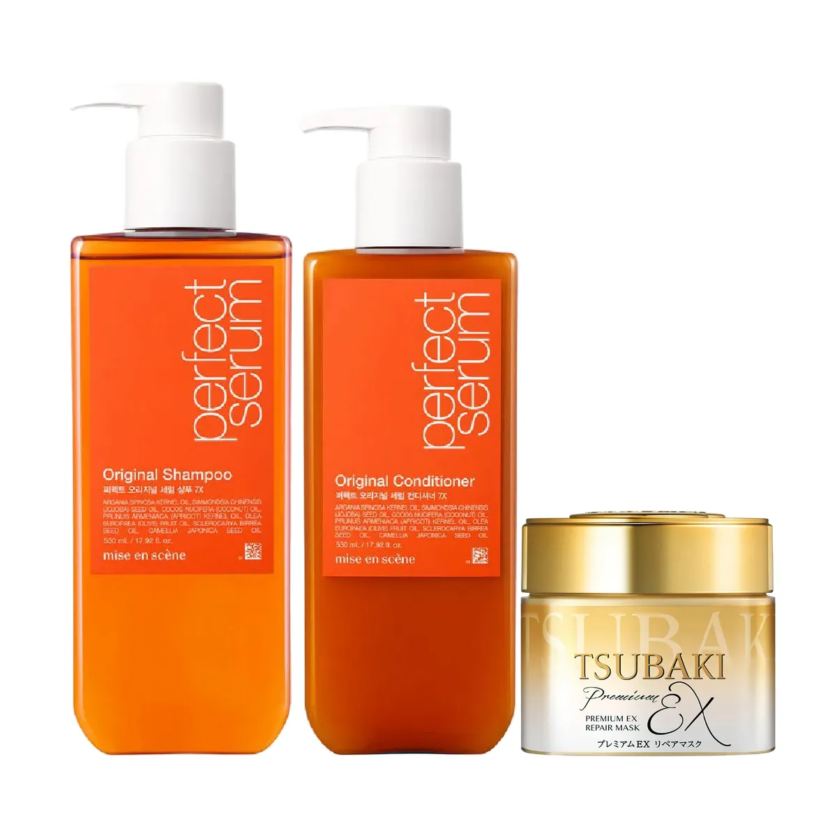 Kit Mise En Scène Perfect Serum Original Shampoo 530ml + Condicionador 530ml + Máscara Capilar Tsubaki 180g