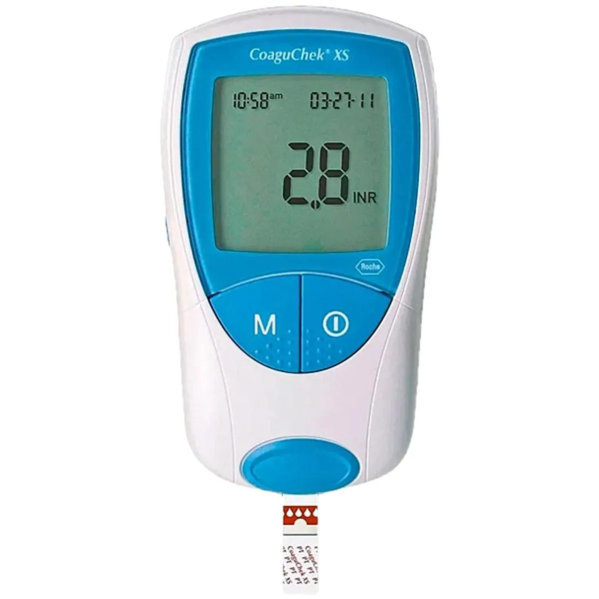 O Monitor de Coagulação CoaguChek XS performa o teste para determinação in-vitro do tempo de protrombina (PT). O teste utiliza sangue total capilar recém-colhido aplicado em sua tira teste, que contém protrombina. Quando o sangue é aplicado, o reagente é dissolvido e ocorre uma reação eletroquímica que se transforma no valor de tempo de coagulação, que é apresentado no ecrã do medidor.Características