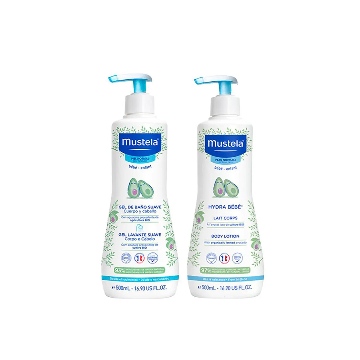 O Kit Mustela Bebê é composto pelo Gel Lavante Mustela Bebê Suave corpo e cabelo e pelo Hidratante infantil Mustela Hydra Bebê, desenvolvidos especialmente para a higiene e os cuidados diários da pele e do cabelo de recém-nascidos, bebês e crianças. O Gel Lavante Mustela limpa de forma suave e natural, enquanto o Hidratante Hydra Bebê garante hidratação imediata e duradoura, protegendo a pele delicada com ativos de origem natural. Esse kit é recomendado por pediatras e dermatologistas para promover cuidado completo, seguro e eficaz.