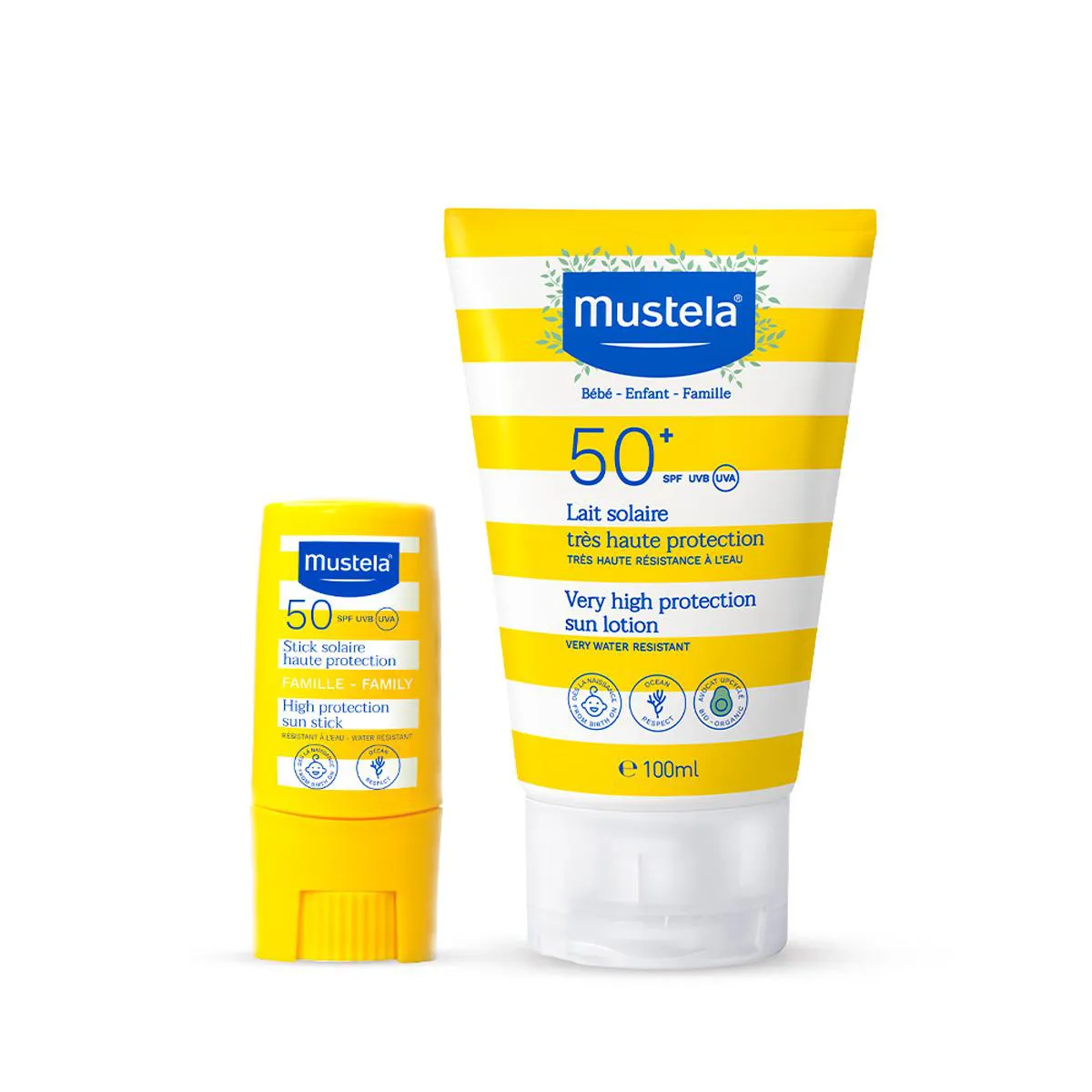 O Kit Protetor Solar Mustela FPS 50 é composto pelo Protetor Solar Facial Stick FPS 50 Mustela infantil e pelo Protetor Solar Loção Facial e Corporal FPS 50+ Mustela. Ambos os produtos oferecem alta proteção contra os raios UVA e UVB, sendo indicados para bebês, crianças e adultos. Possuem fórmulas hipoalergênicas, sem perfume, com ingredientes naturais, que ajudam a proteger a pele sensível e intolerante ao sol. São práticos, resistentes à água, suor e areia, proporcionando proteção diária segura e eficaz para toda a família.