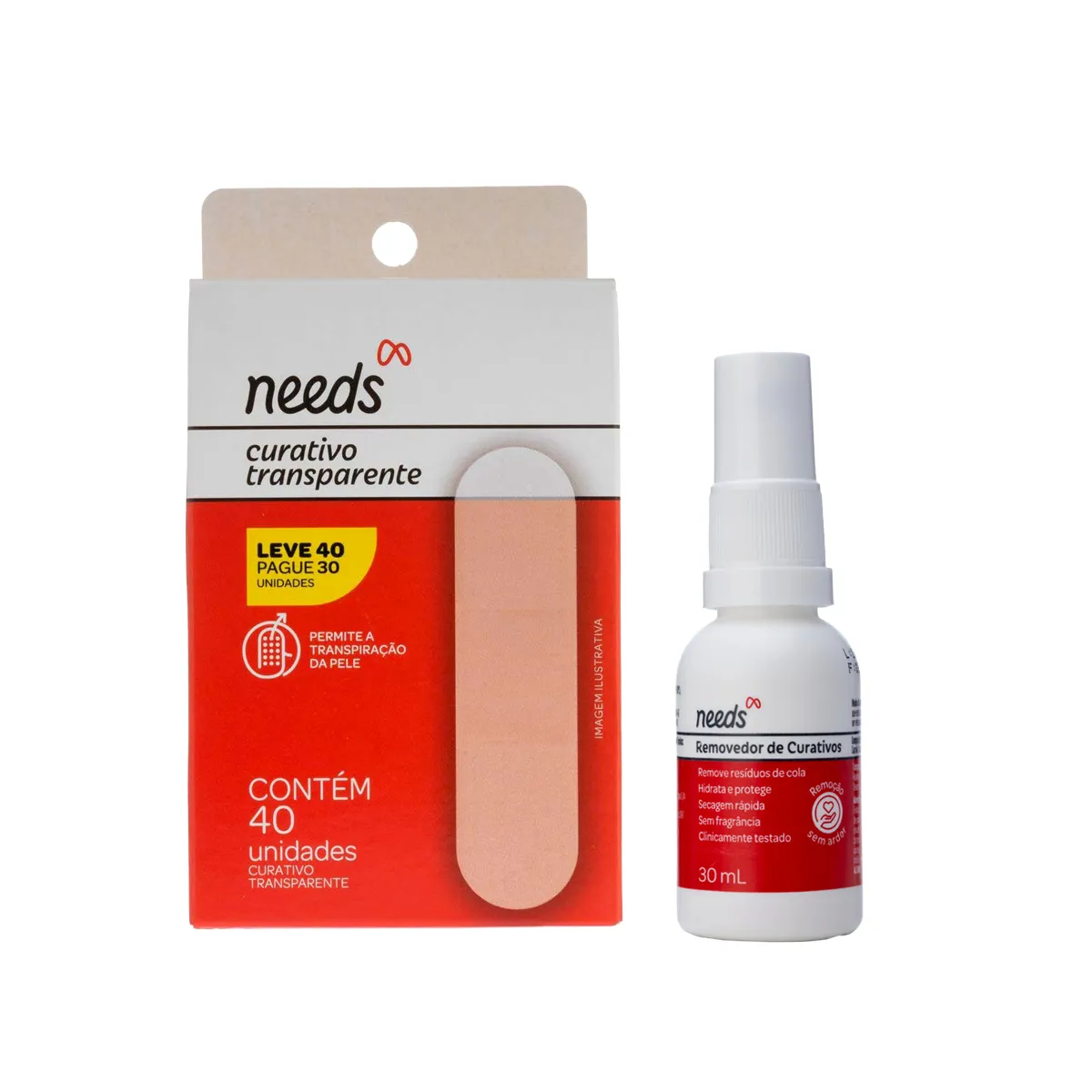 Kit Needs Curativo Transparente 40 Unidades + Removedor de Curativos Spray 30ml