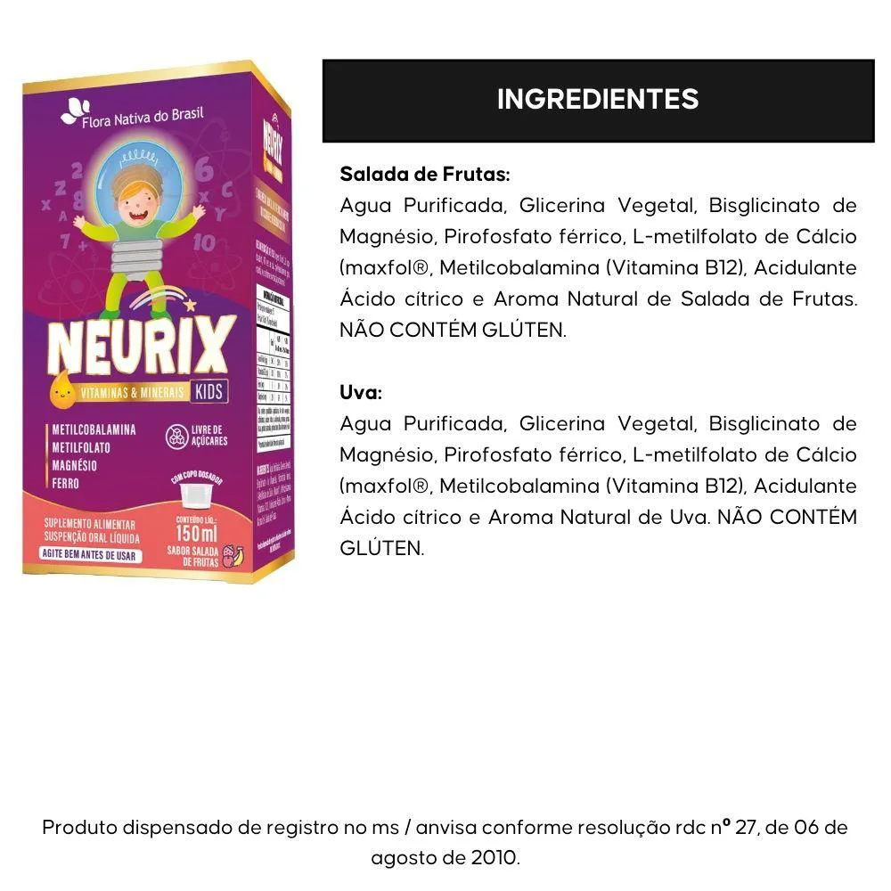 01 unidade do NEURIX 150ml - Sabor a escolher UVA ou Salada de Frutas.