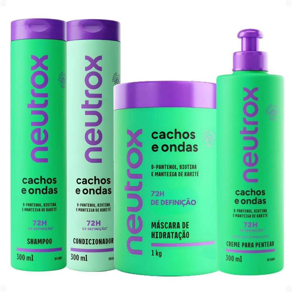 Kit Neutrox Cachos e Ondas: Shampoo, Condicionador 300Ml, Máscara Capilar 1Kg e Creme para Pentear