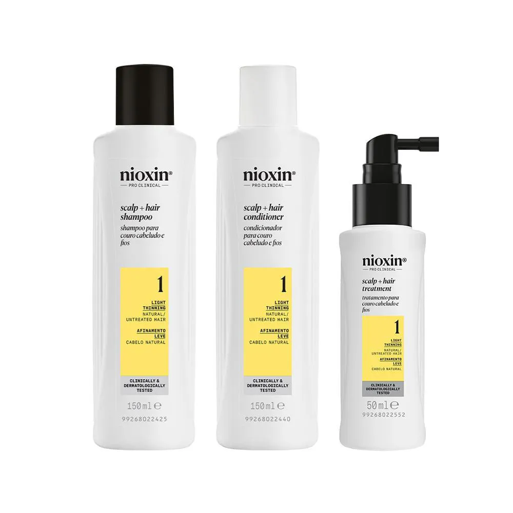1- Kit Nioxin Volume & Thinning Sistema 1 Espessamento Cabelo Natural Afinamento Leve 3 Produtos Sh 150.