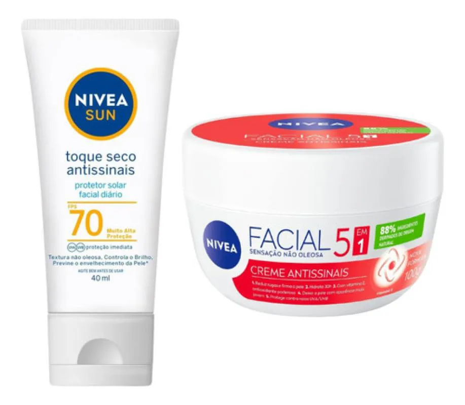 KIT NIVEA ANTISSINAIS PROTETOR SOLAR FPS70 40ML + CREME 100G