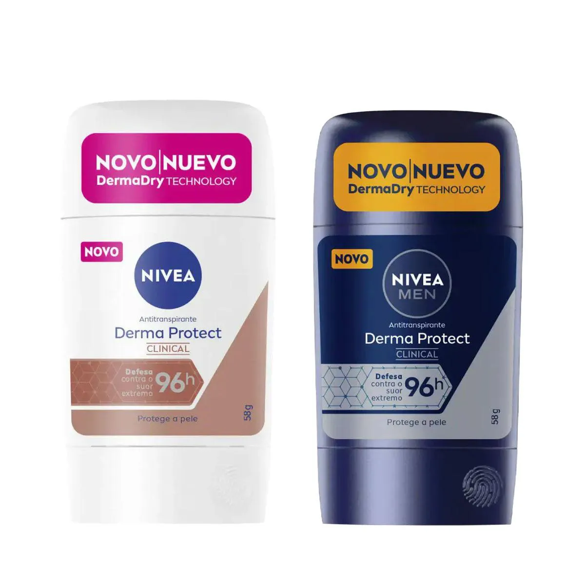 Kit Nivea Desodorante Antitranspirante Stick Barra Derma Protect Clinical Feminino 96h 54g + Desodorante Antitranspirante Stick Barra Men Derma Protect Clinical 96h 54g