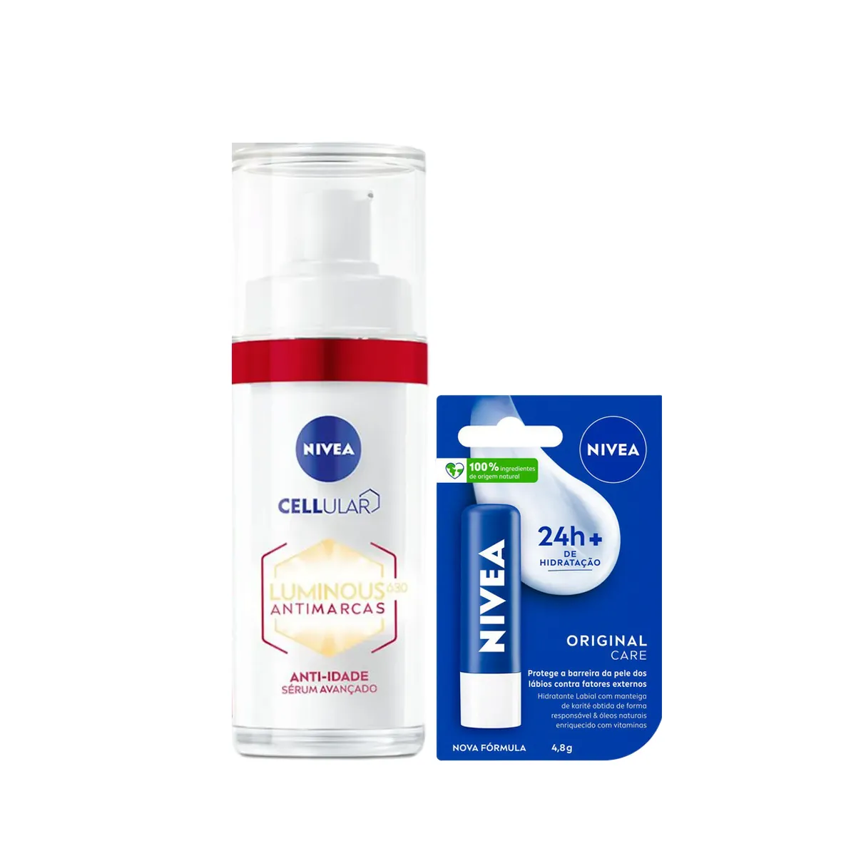 Kit Nivea Sérum Facial Cellular Luminous 630® Antimarcas Anti-idade 30ml + Hidratante Labial Original Care 4,8g