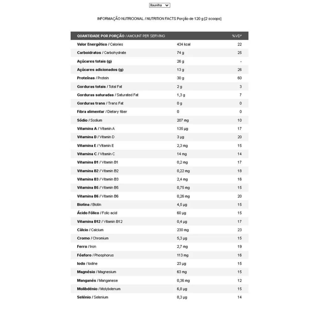 - Whey (baunilha): ideal no pós-treino ou como lanche proteico ao longo do dia.