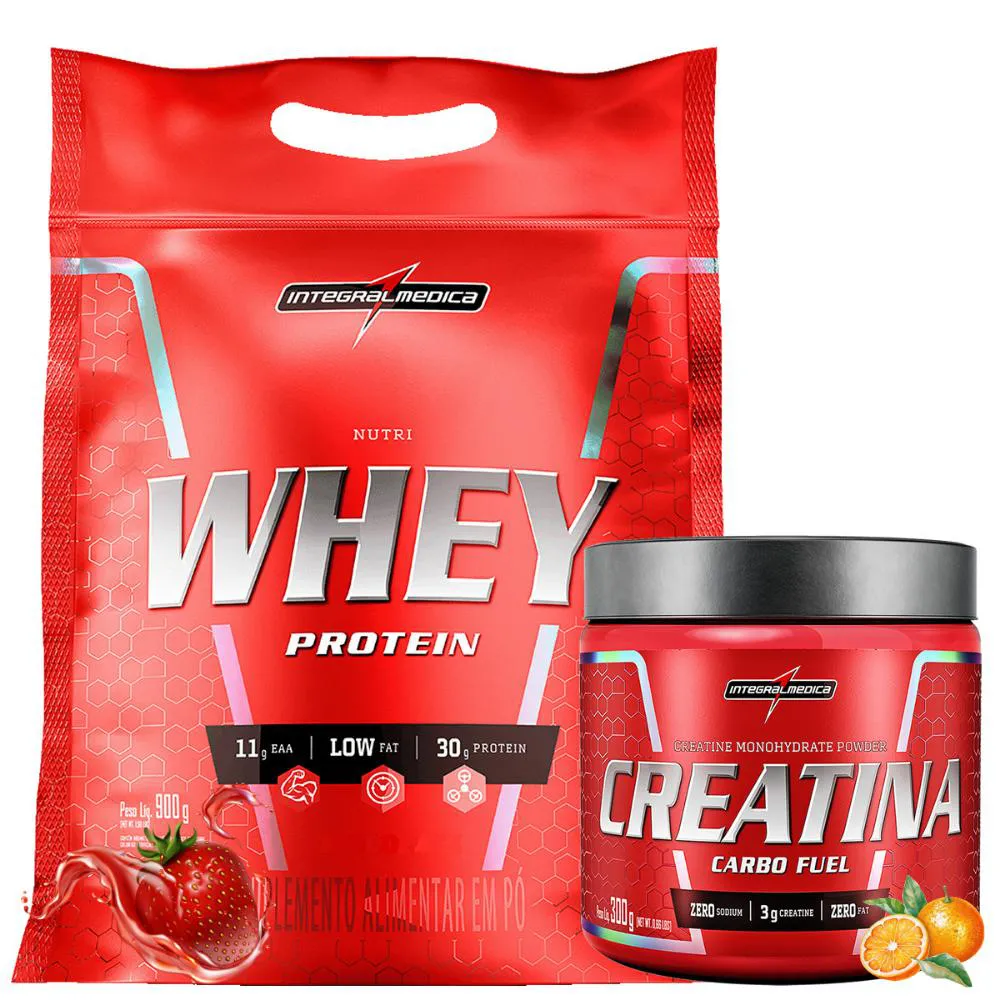 Kit Nutri Whey Morango 900g + creatina CarboFuel Laranja 300g – Integralmédica