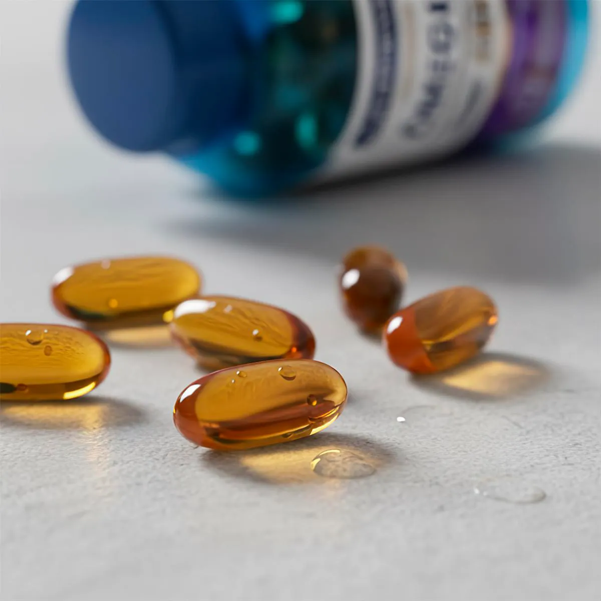 - Suplemento de óleo de peixe em cápsulas.