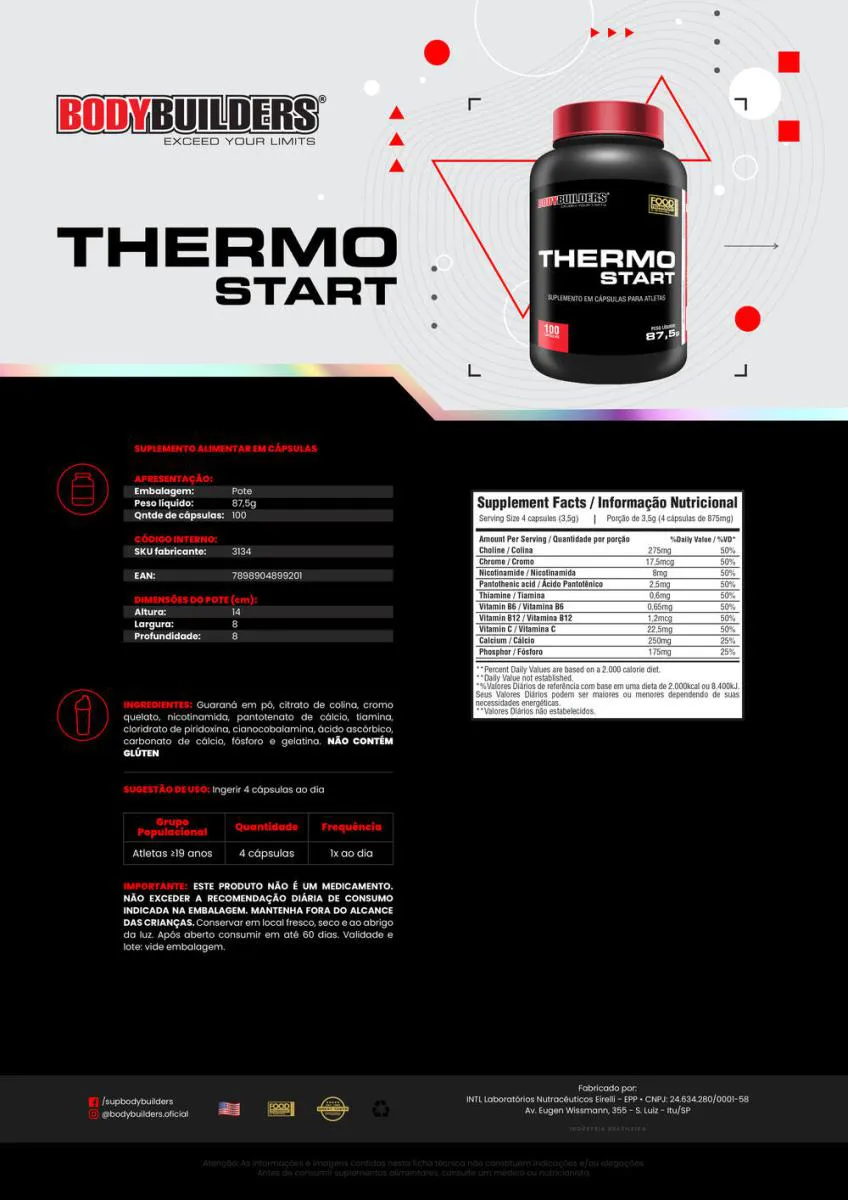 Optimum Isolate whey protein é um suplemento alimentar formulado com um blend das mais nobres proteínas disponíveis como: proteína isolada de soro de leite, proteína hidrolisada do trigo (glutamina peptídeo), caseína, proteína isolada da soja e albumina, com diferentes tempos de absorção pelo organismo, garantindo assim uma adequada ingestão proteica, ajudando a construir um corpo mais forte e definido. Optimum Isolate Whey Protein é rico em BCAAs e outros aminoácidos essenciais que podem proporcionar mais energia e força, garantindo um melhor desempenho, para auxiliar no volume e definição muscular. A Glutamina é indispensável na dieta de quem pratica treinos longos, intensos e regulares e sua suplementação é responsável pela construção de proteínas no corpo humano. Desta forma, a Glutamina ajuda a melhorar o seu desempenho e performance durante os exercícios do dia a dia, além de auxiliar na recuperação e manutenção dos músculos. O Thermo Start Powder Bodybuilders foi desenvolvido pensando nos consumidores que desejam emagrecer de maneira saudável se beneficiando de um produto que não traga malefícios para sua saúde. Quando falamos de suplementos termogênicos com certeza você já ouviu alguém contar algum relato de efeitos colaterais como tremedeira, batimento cardíaco acelerado, etc. Thermo Start Powder Bodybuilders tem uma quantidade moderada de cafeína por dose (210mg) acompanhado de maltodextrina.