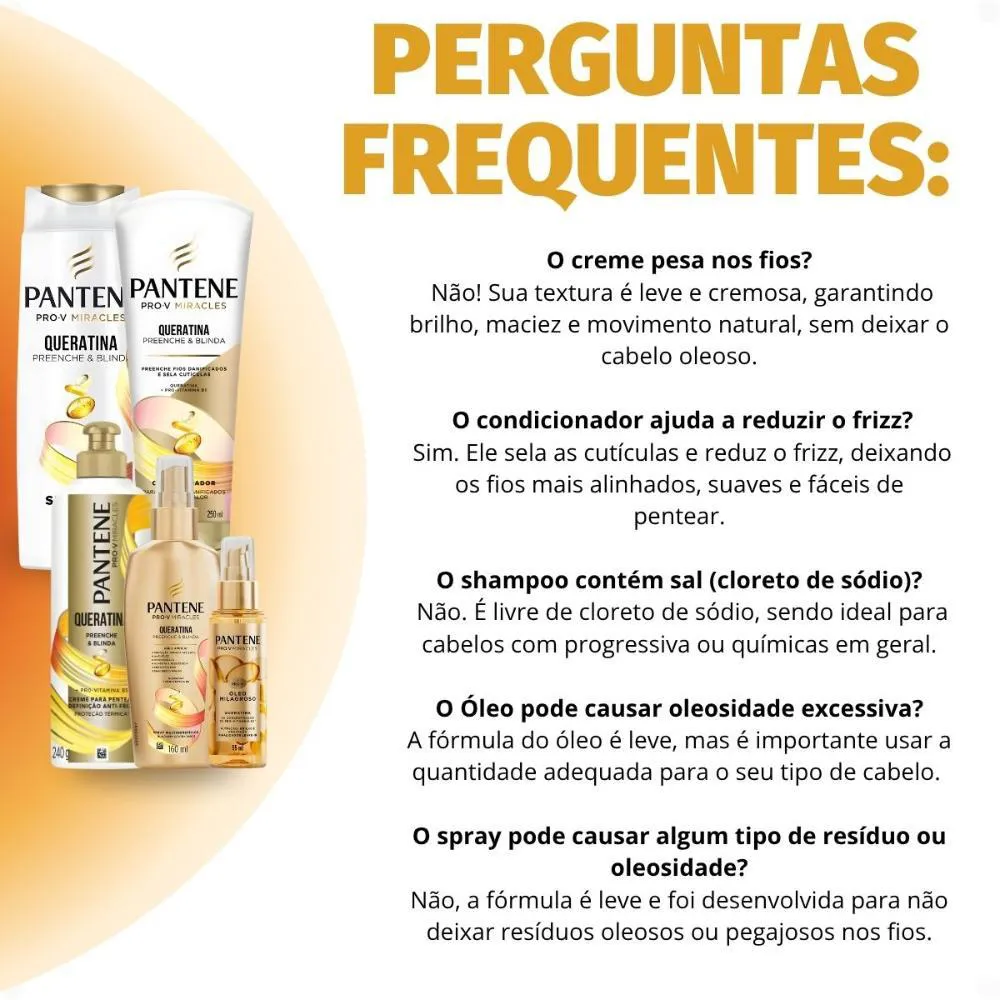 O Kit Pantene Pro-V Queratina é um conjunto completo de produtos capilares desenvolvido para tratamento e recuperação dos cabelos, composto por cinco itens essenciais que atuam em sinergia para promover reconstrução, fortalecimento e hidratação capilar.