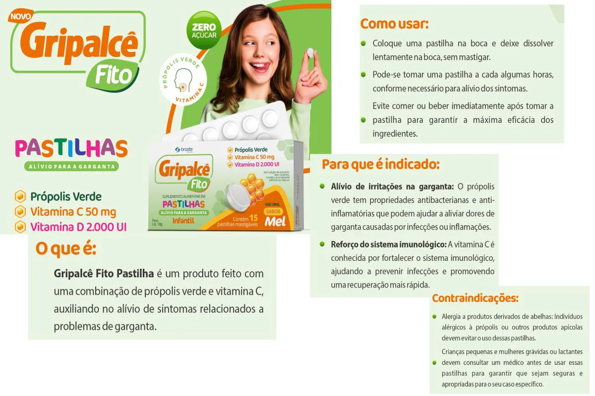 Cuidando da Sua Família com Phitóss Pastilhas e Gripalcê Fito Pastilhas! A saúde da sua família é o bem mais precioso, e para garantir o bem-estar de todos, contar com produtos de confiança faz toda a diferença. Phitóss Pastilhas: Com poderosos ingredientes naturais (Própolis, vitamina c), essas pastilhas são ideais para aliviar os desconfortos da garganta e proteger as vias respiratórias, oferecendo aquele alívio que todos precisam, sem perder o sabor maravilhoso de Limão, Mentol e Gengibre. Gripalcê Fito Pastilhas: Quando o tempo vira e as gripes e resfriados chegam, nada melhor que Gripalcê Fito Pastilhas. Sua fórmula cuidadosamente elaborada com extratos naturais (Própolis, vitamina C e vitamina d 2.000UI) ajuda a reduzir os sintomas da gripe e proporciona conforto para toda a família, desde os pequenos até os mais velhos, com aquele gostinho do mel. Porque a saúde da sua família merece o melhor cuidado. Saboroso e eficaz