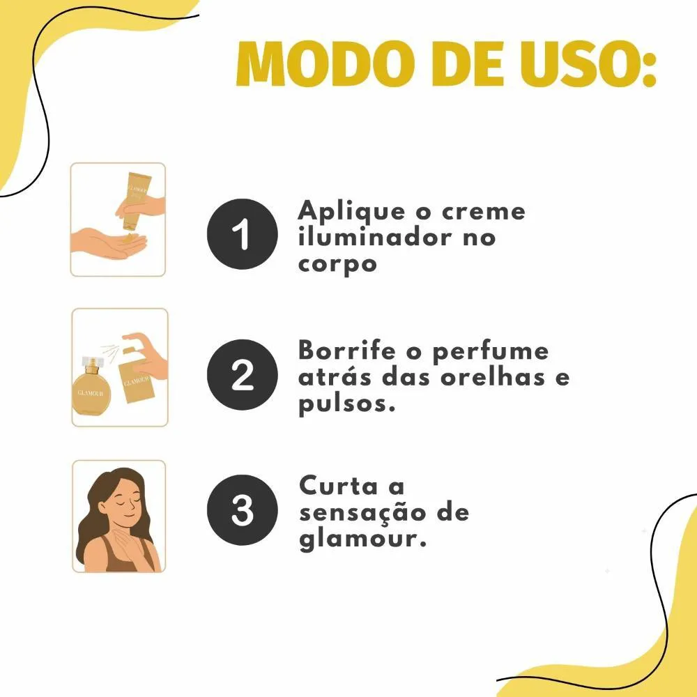 Pele delicadamente perfumada com a luxuosa fragrância Glamour.