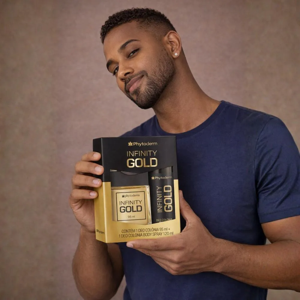 Contém:- 01 Deo Colônia Phytoderm Infinity Gold 95ml.- 01 Deo Colônia Body Spray Phytoderm Infinity Gold 120ml.O Kit Phytoderm Infinity Gold é a escolha ideal para o homem moderno que busca uma fragrância que o acompanhe em todos os momentos, transmitindo elegância e sofisticação. Este conjunto exclusivo da PHYTODERM combina a intensidade da Deo Colônia com a praticidade do Body Spray, oferecendo uma experiência olfativa completa e marcante. Perfeito para o público masculino que valoriza o frescor e a confiança, este kit eleva sua presença, tornando cada ocasião inesquecível.
