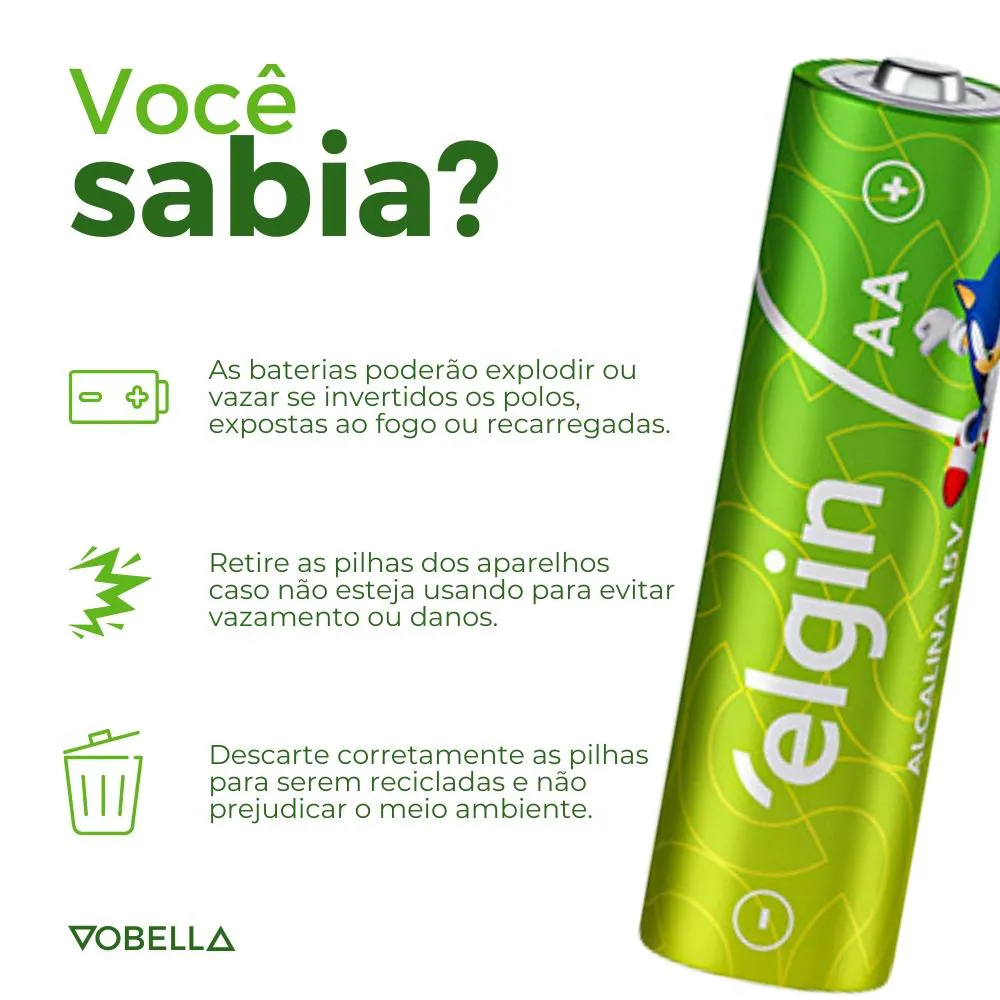 Kit Pilhas Alcalinas AA+AAA Elgin – Energia duradoura e confiável para seus dispositivos Cansado de pilhas que acabam rápido e te deixam na mão? As Pilhas Alcalinas Elgin oferecem energia estável e de longa duração para seus aparelhos do dia a dia. Com um blister contendo 16 unidades, você garante praticidade, qualidade e ótimo custo-benefício para manter tudo funcionando sem interrupções. Por que escolher as Pilhas Alcalinas Elgin? Produzidas sem metais pesados e com tecnologia de alta durabilidade, elas são ideais para quem busca desempenho superior, economia e segurança. Sobre o produto: -Marca: Elgin. -Contém: 8 Pilhas AAA - 3A (Palito). 8 Pilhas AA - 2A (Pequena). -Modelo: Alcalina -Voltagem: 1.5 Volts. -Não recarregável. -0% de metais pesados. -Alta durabilidade. -Economia e qualidade. Indicado para: -Controles remotos. -Rádios. -Brinquedos. -Lanternas. -MP3 players. -Câmeras digitais. -Dispositivos diversos que utilizam pilhas AA e AAA. Modo de uso: -Abra o compartimento de pilhas do seu aparelho. -Retire as pilhas antigas, se houver. -Insira as Pilhas Alcalinas Elgin respeitando a posição correta dos polos positivo e negativo. -Feche o compartimento. -Pronto! Seu aparelho está novamente em funcionamento. Precauções: -Não recarregue. -Armazene em local seco e fresco. -Mantenha fora do alcance de crianças. Com as Pilhas Alcalinas Elgin, você garante energia confiável e desempenho constante para seus dispositivos. Adquira já o blister com 8 unidades e tenha sempre energia à disposição! Surgiu alguma dúvida? Entre em contato com a gente! Boas Compras :)