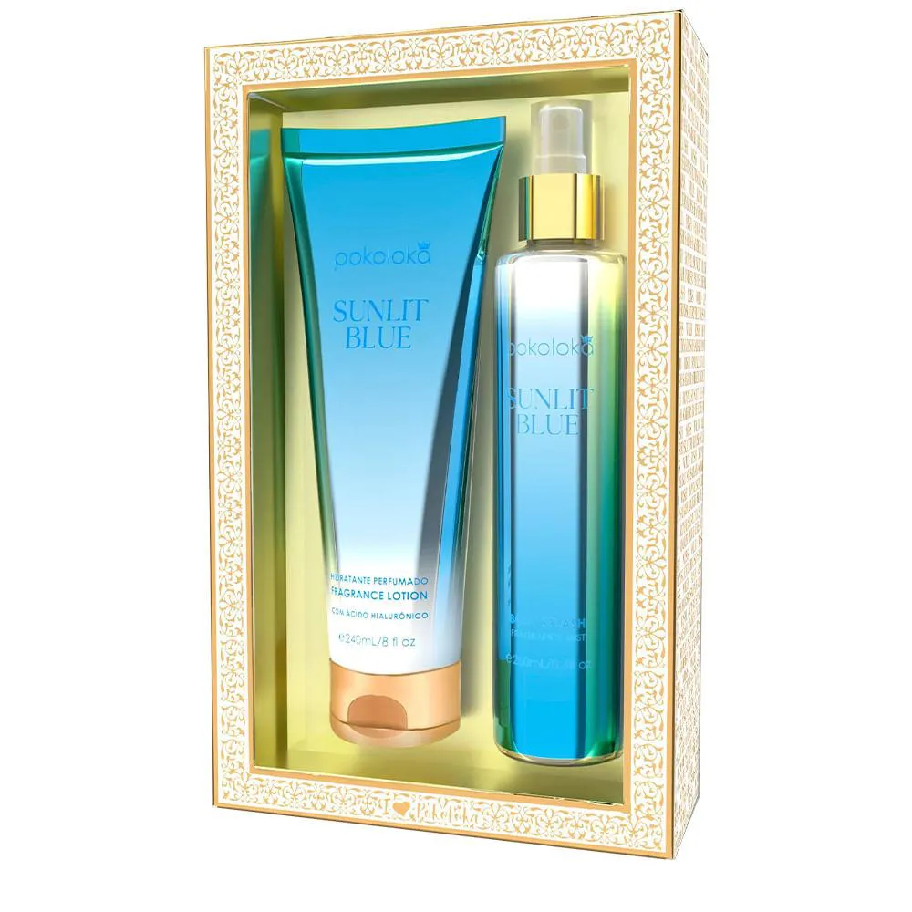 O Kit Pokoloka Sunlit Blue Compartilhável combina hidratação intensa e perfumação floral frutado, ideal para momentos especiais, encontros românticos e eventos sofisticados, com embalagens recicláveis e práticas.