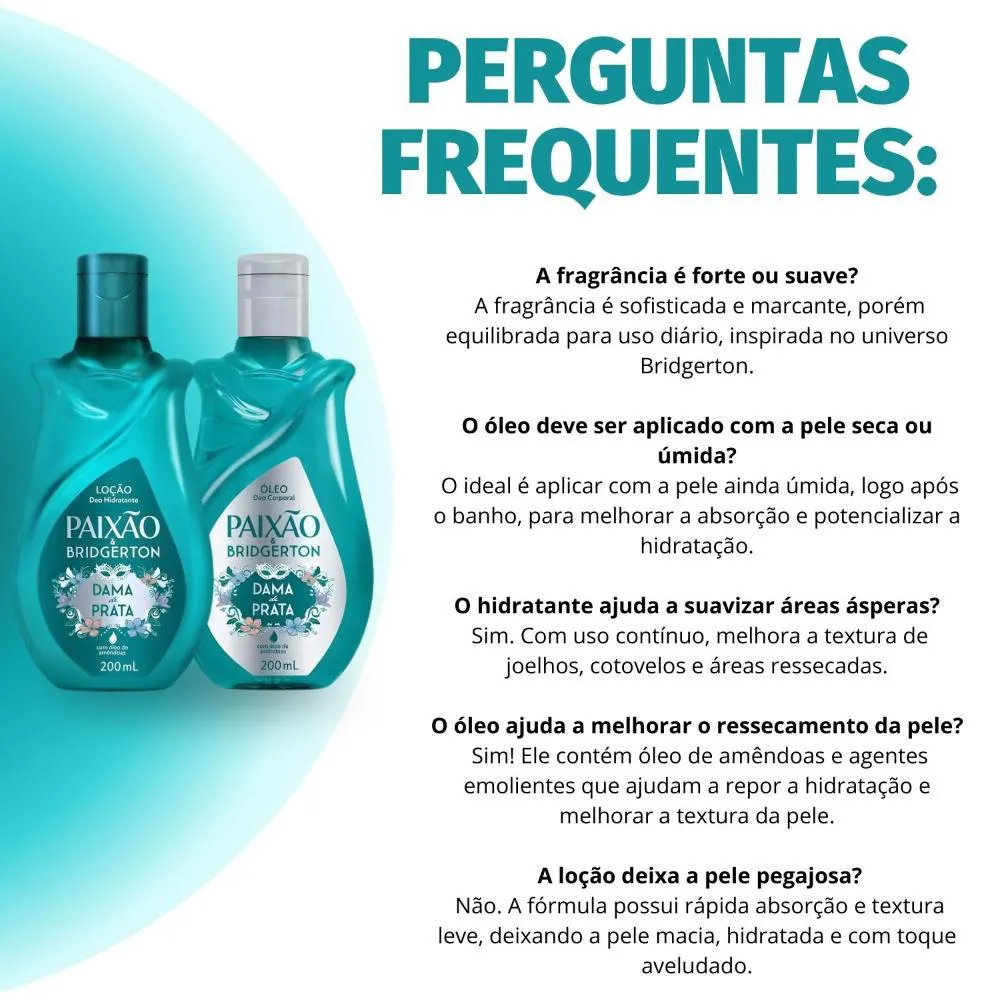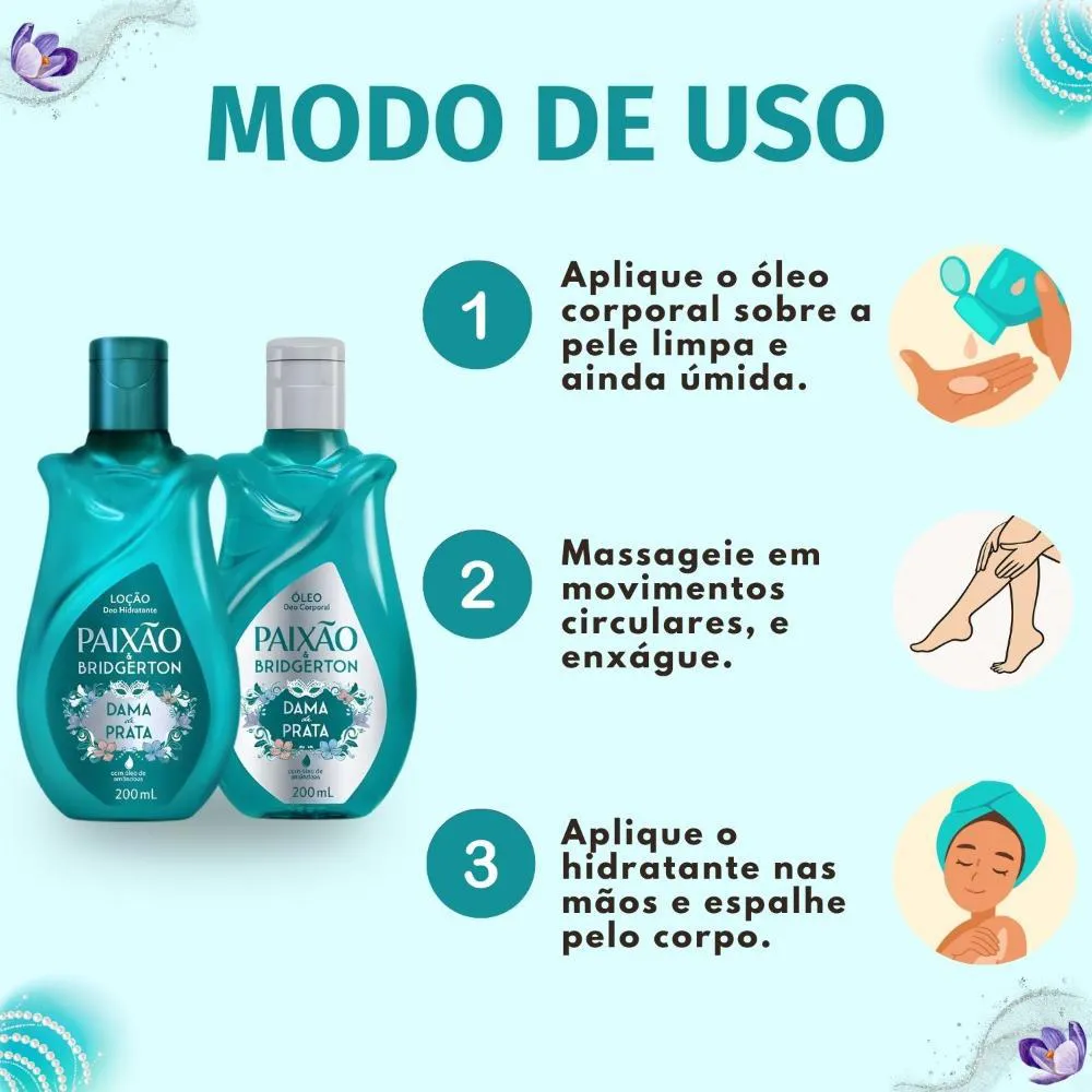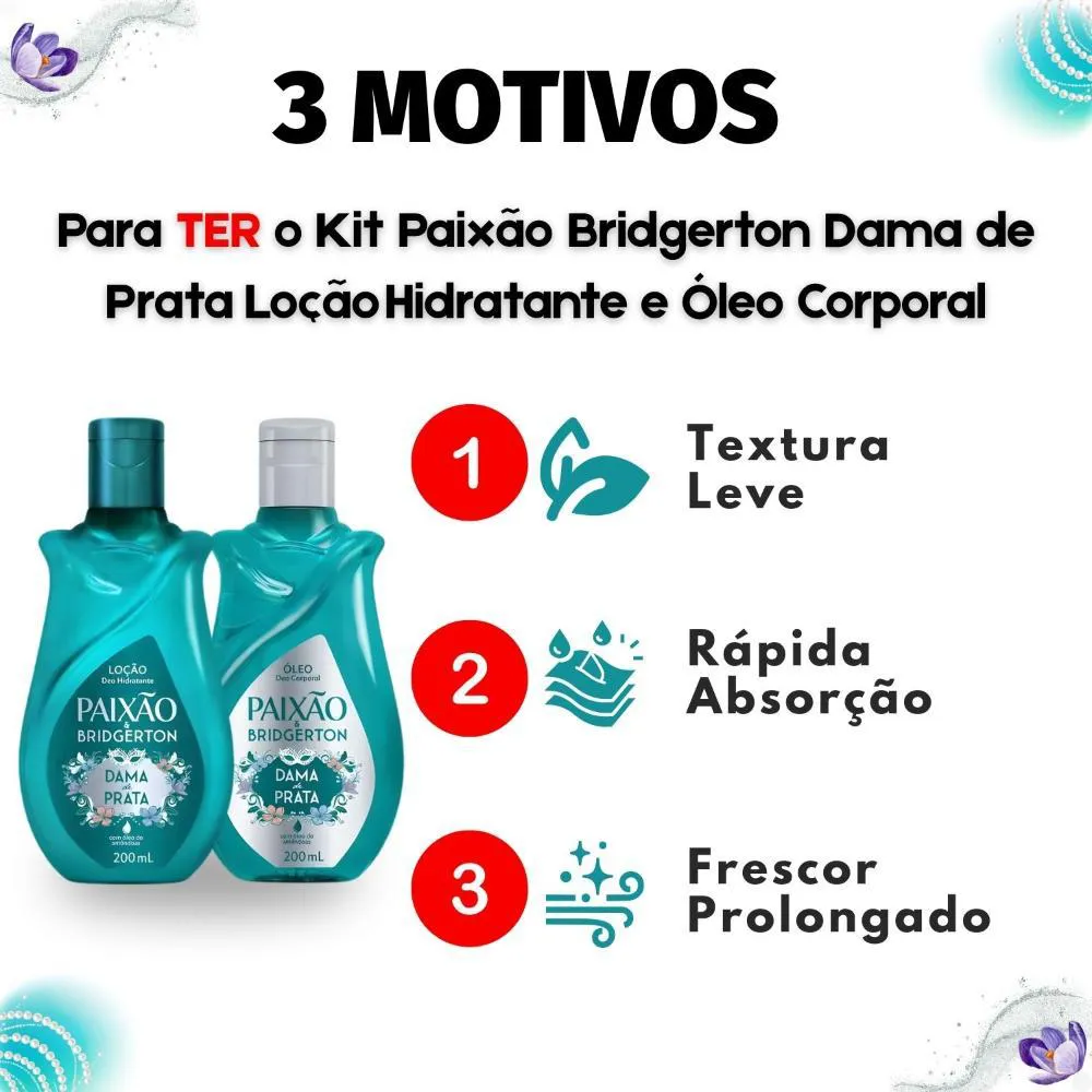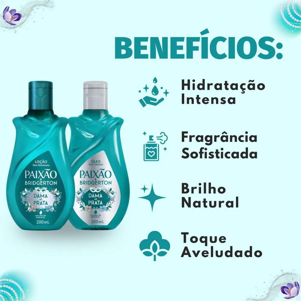 Kit Presente Paixão Bridgerton Dama De Prata: Loção Hidratante e Óleo Corporal 200ml