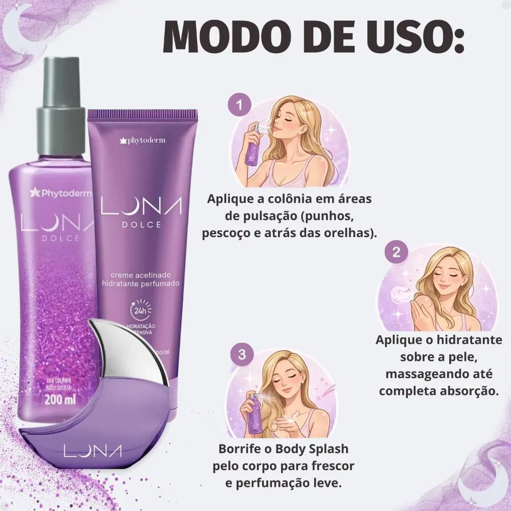 Kit Presente Phytoderm Luna Dolce: Colônia 50Ml, Body Splash 200Ml e Hidratante 200G