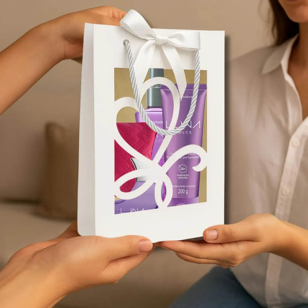 - 01 Perfume Phytoderm Luna Dolce 50ml.- 01 Body Splash Phytoderm Luna Dolce 200ml.- 01 Hidratante Corporal Phytoderm Luna Dolce 200g. - 01 Sacola Presente 18x25x13cm.- 01 Mimo Necessaire.Descubra o encanto e a sofisticação com o Kit Phytoderm Luna Dolce, uma edição especial criada para envolver sua pele em uma experiência sensorial inesquecível. Este kit completo oferece uma pele profundamente hidratada e delicadamente perfumada com a inconfundível fragrância Luna Dolce, ideal para a mulher que deseja marcar presença com sensualidade e ousadia.A fragrância Luna Dolce, da PHYTODERM, é uma explosão de notas de ameixa roxa, canela e lichia, com o frescor do limão siciliano, que se unem a um rico e sofisticado buquê floral de rosa, jasmim sambac, flor de laranjeira e íris. O toque gourmand da avelã e da fava tonka, complementado por sândalo, patchouli e madeiras ambaradas, resulta em uma composição elegante e misteriosa de longa duração. O creme hidratante, com sua fórmula de extra perfumação, garante 24 horas de hidratação intensa, deixando a pele com um toque aveludado e acetinado.Benefícios Principais